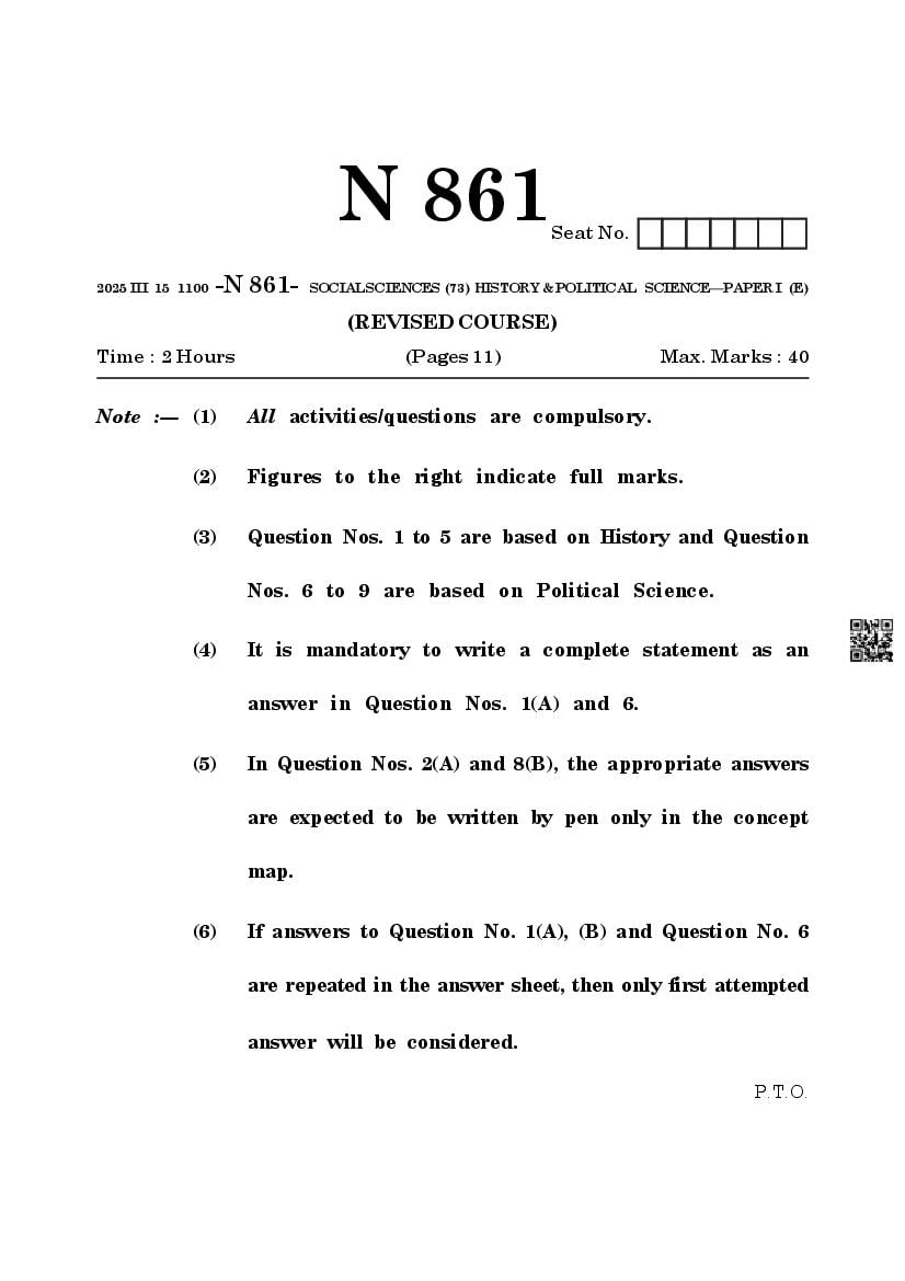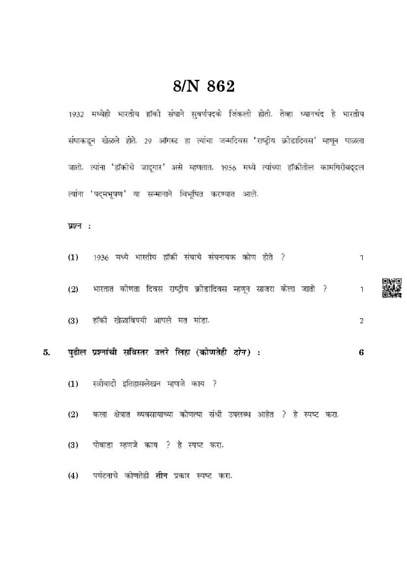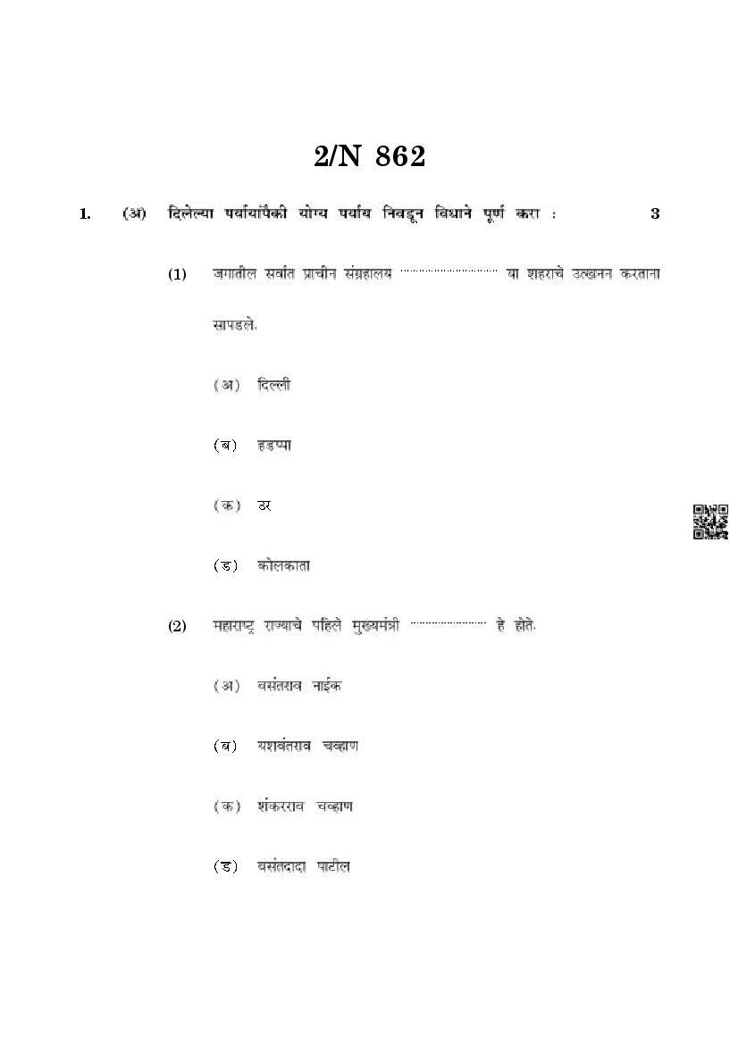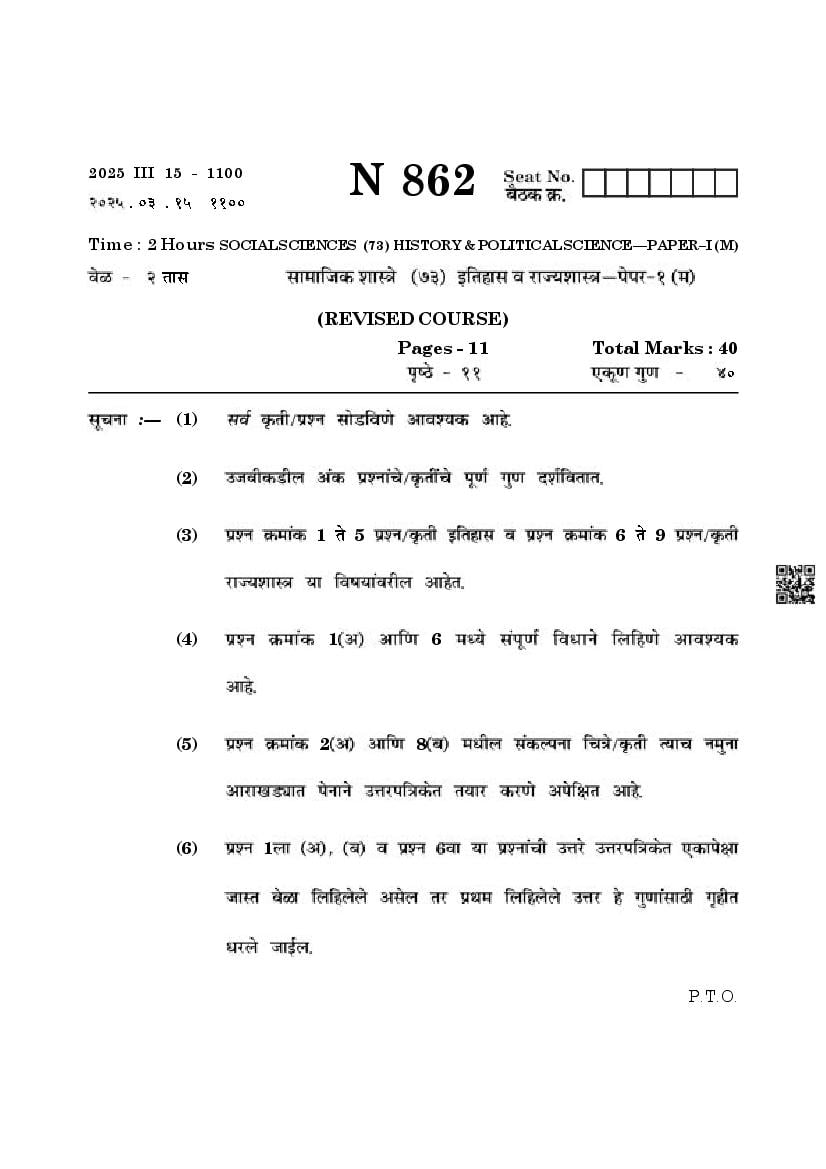 Maharashtra SSC History Question Paper 2025 PDF