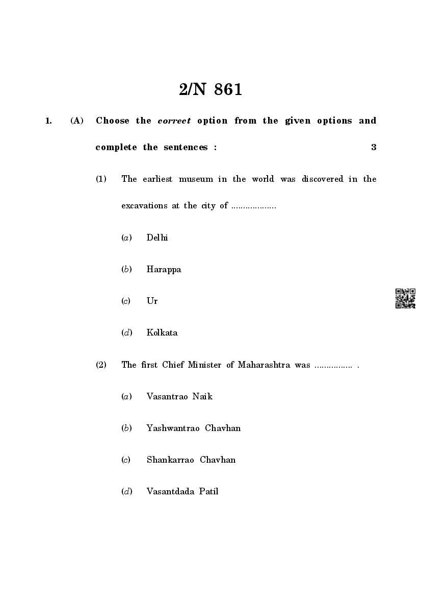 The Maharashtra Board Exam Question Paper of Class 10 SSC History is as follows.