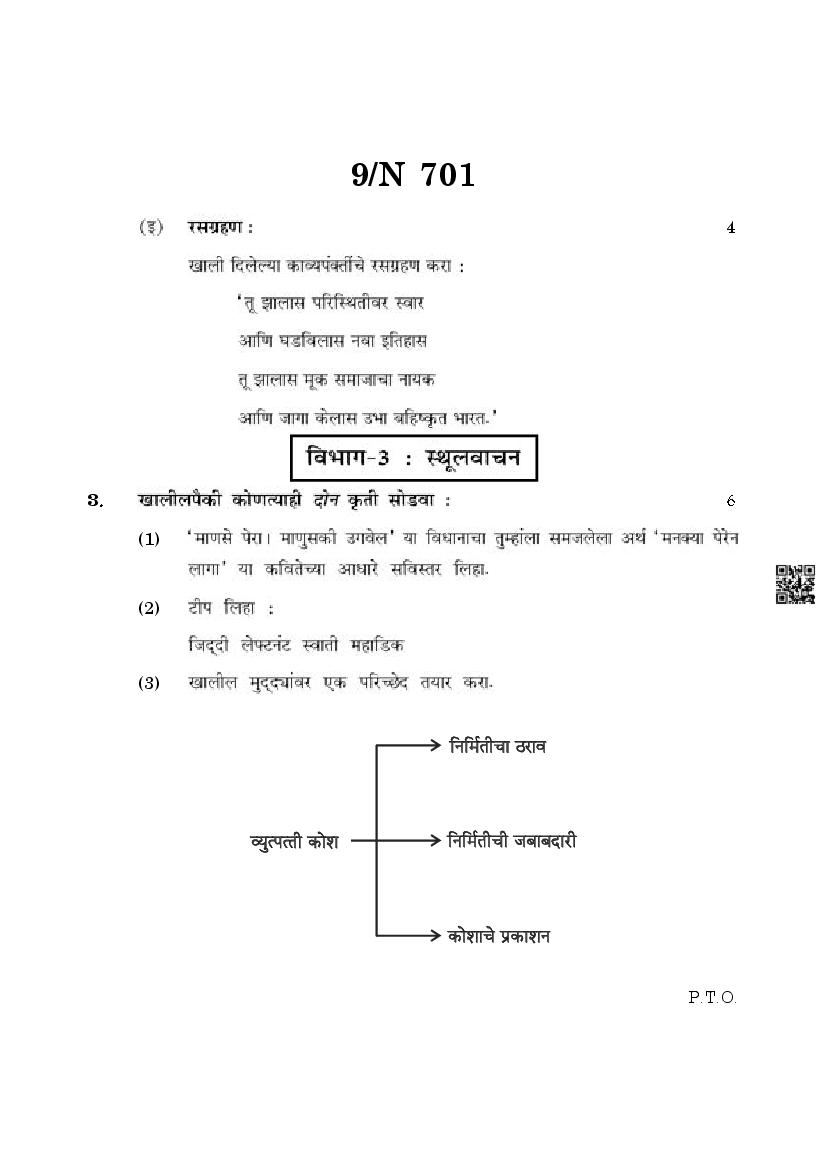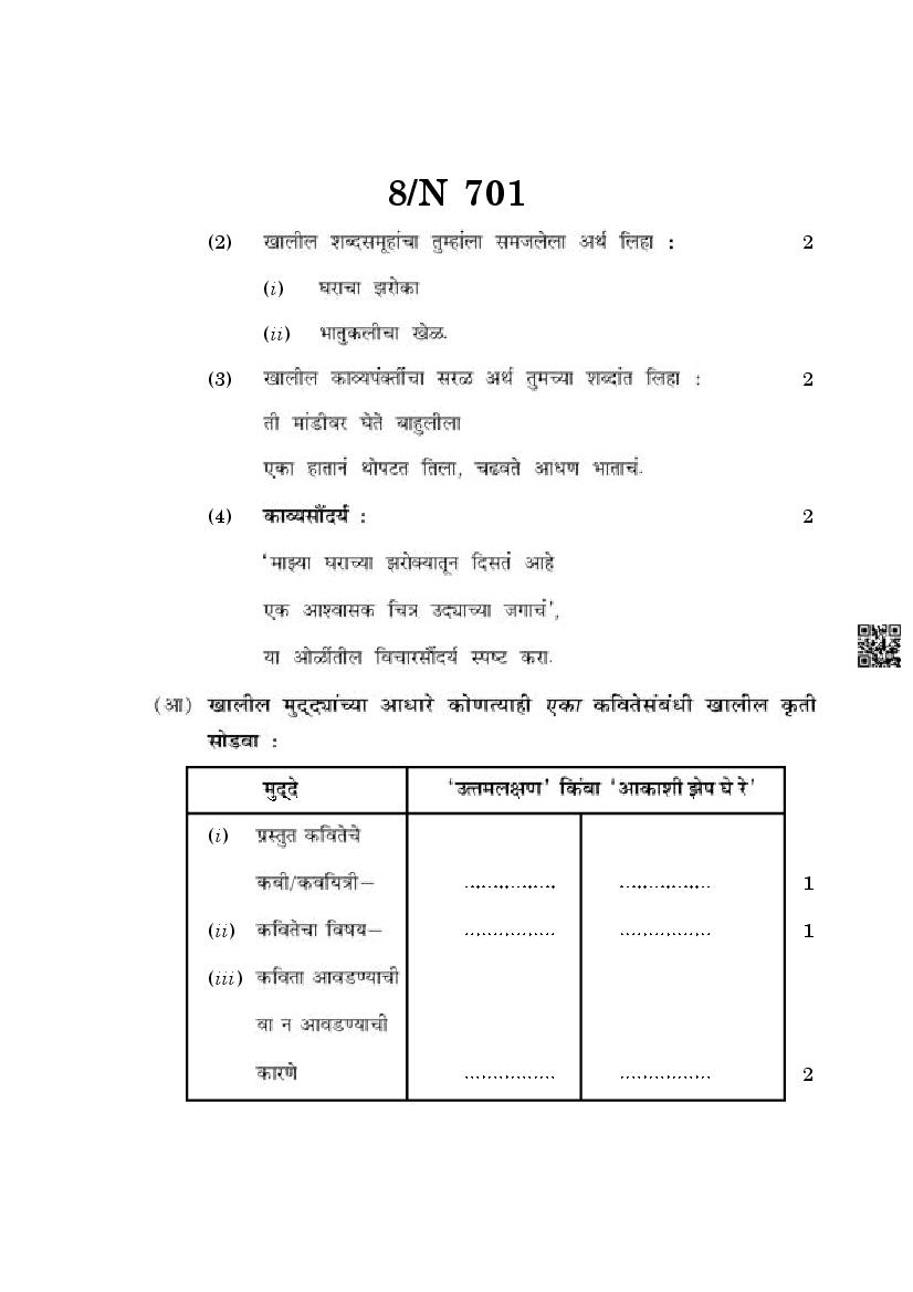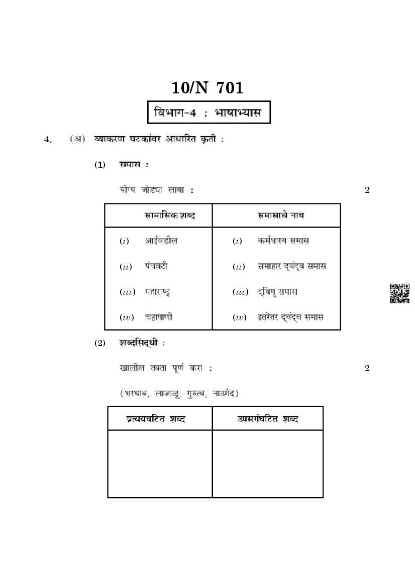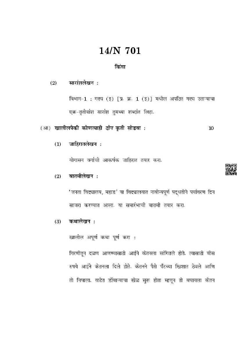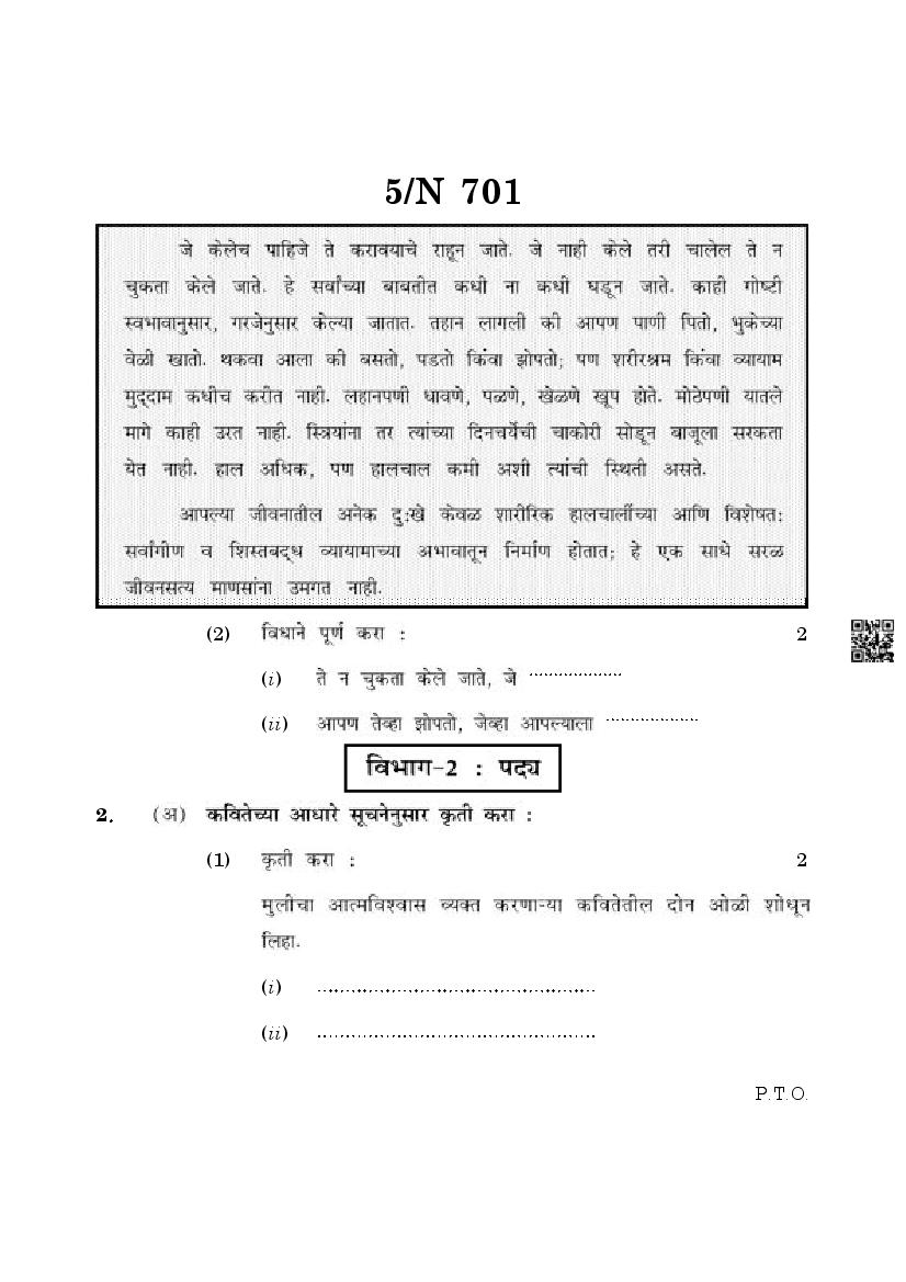 The Maharashtra Board Exam Question Paper of Class 10 SSC Marathi is as follows.