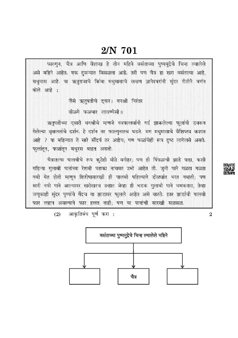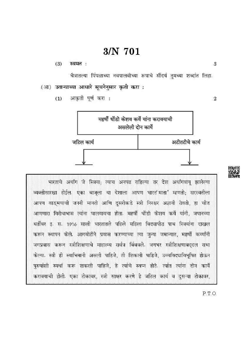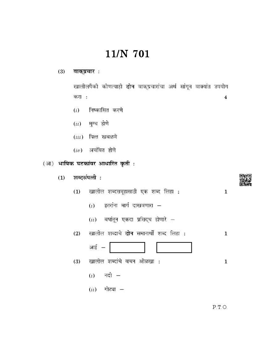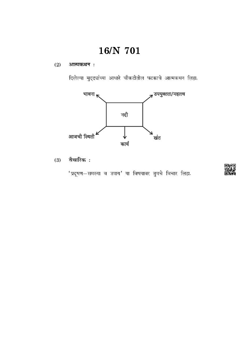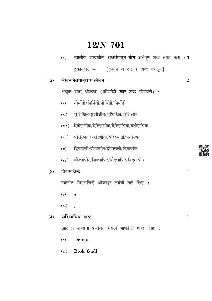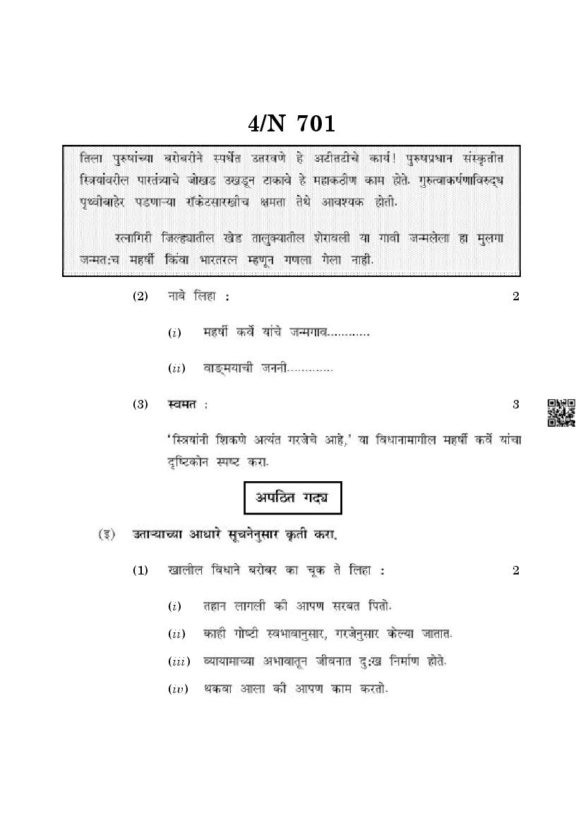 The Maharashtra Board Exam Question Paper of Class 10 SSC Marathi is as follows.