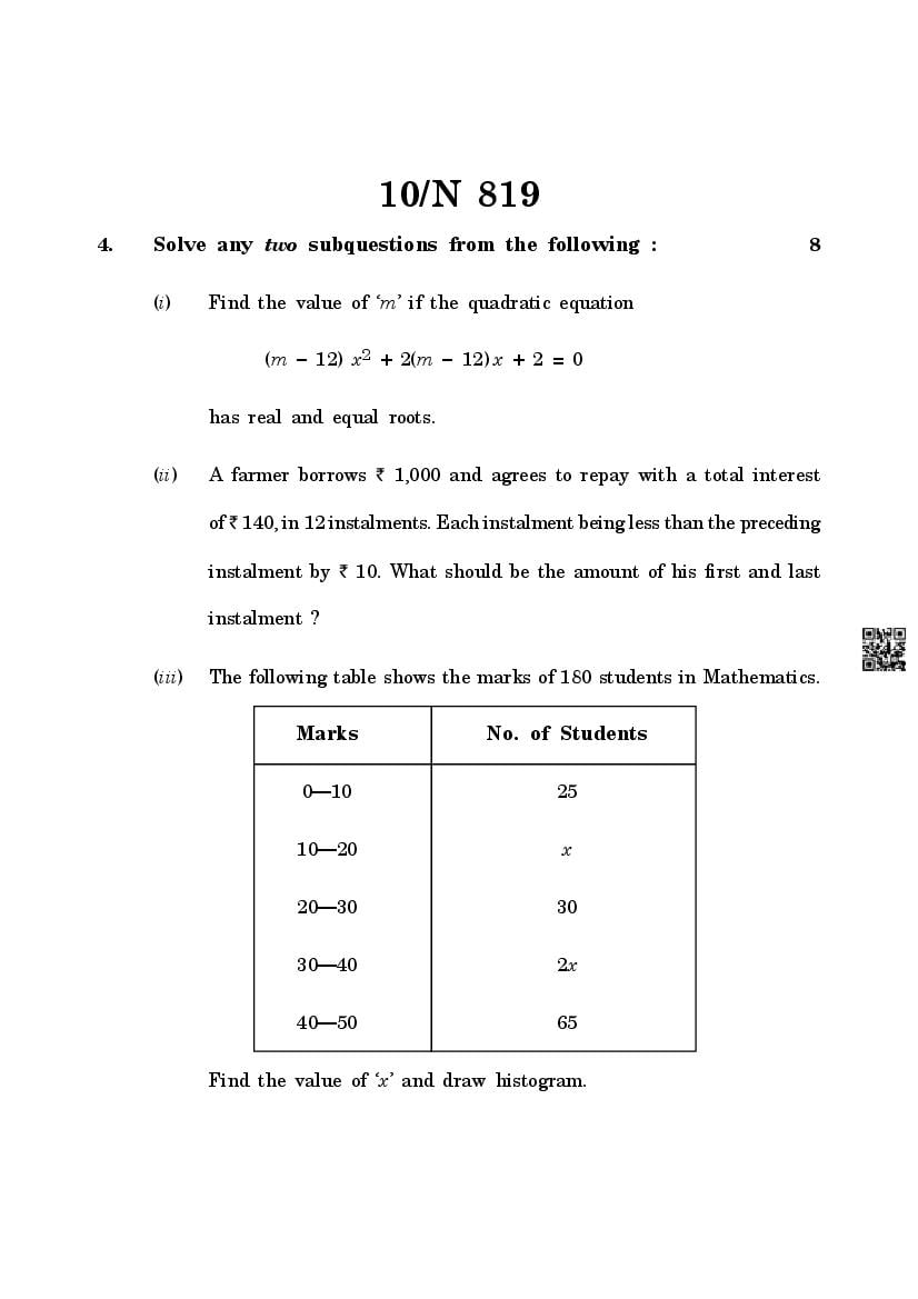| Educational Resource Here | Maharashtra Board Previous Year Question Paper of Class 10 Maths Part 1 |