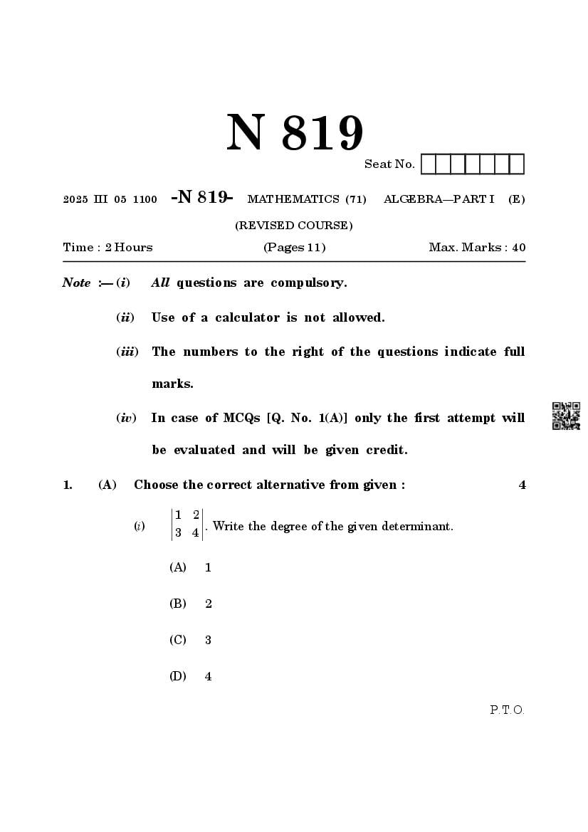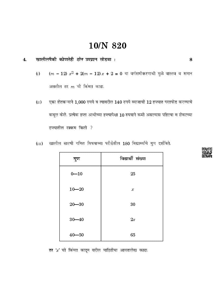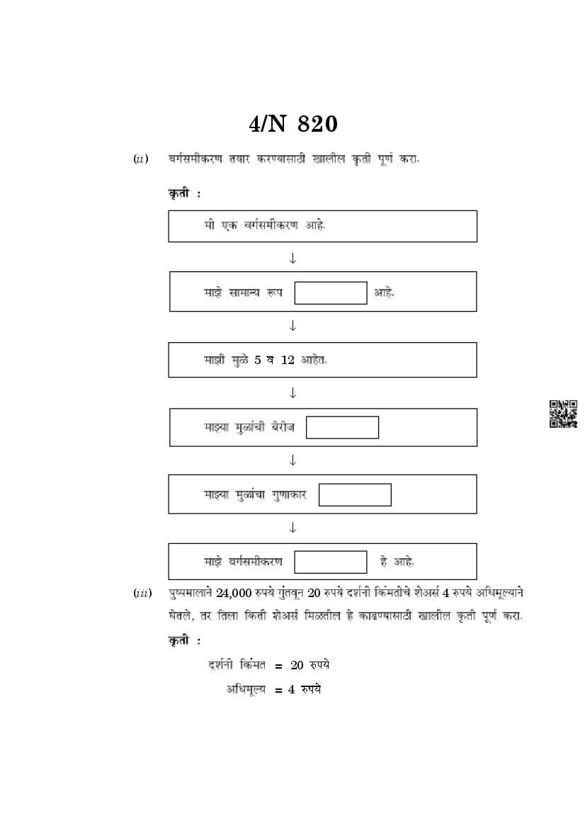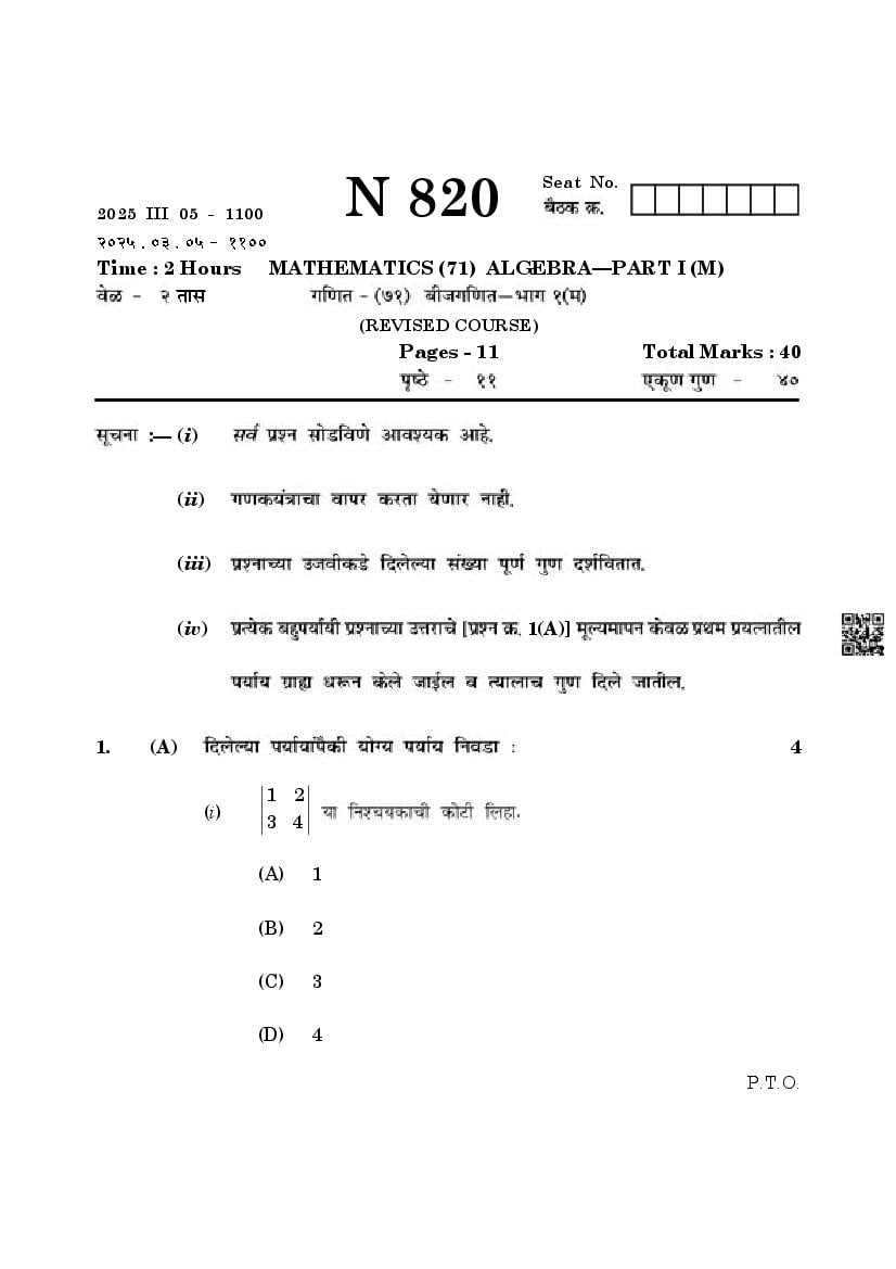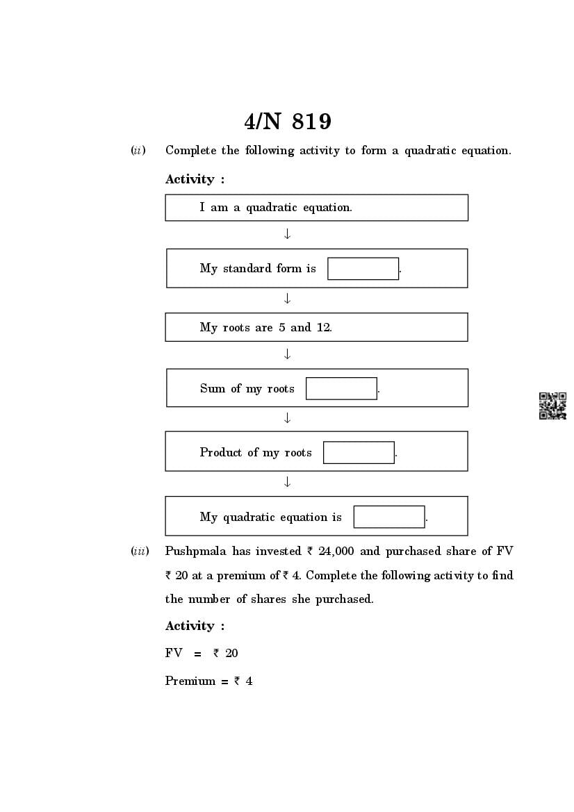 MH 10th Question Paper 2025 Maths Part 1 Algebra View Download