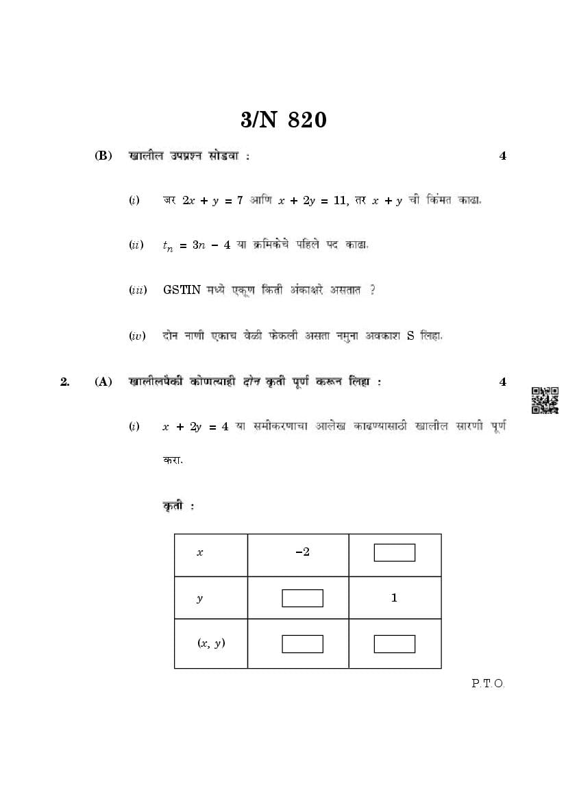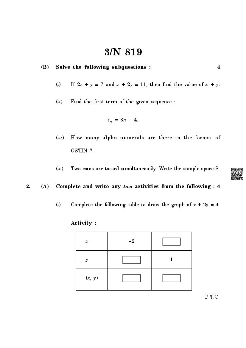 The Maharashtra Board Exam Question Paper of Class 10 SSC Maths Part 1 is as follows.