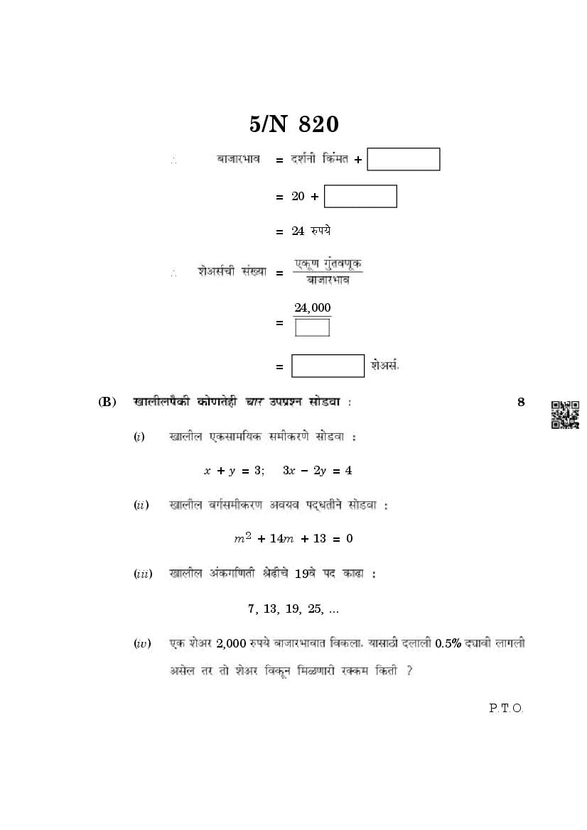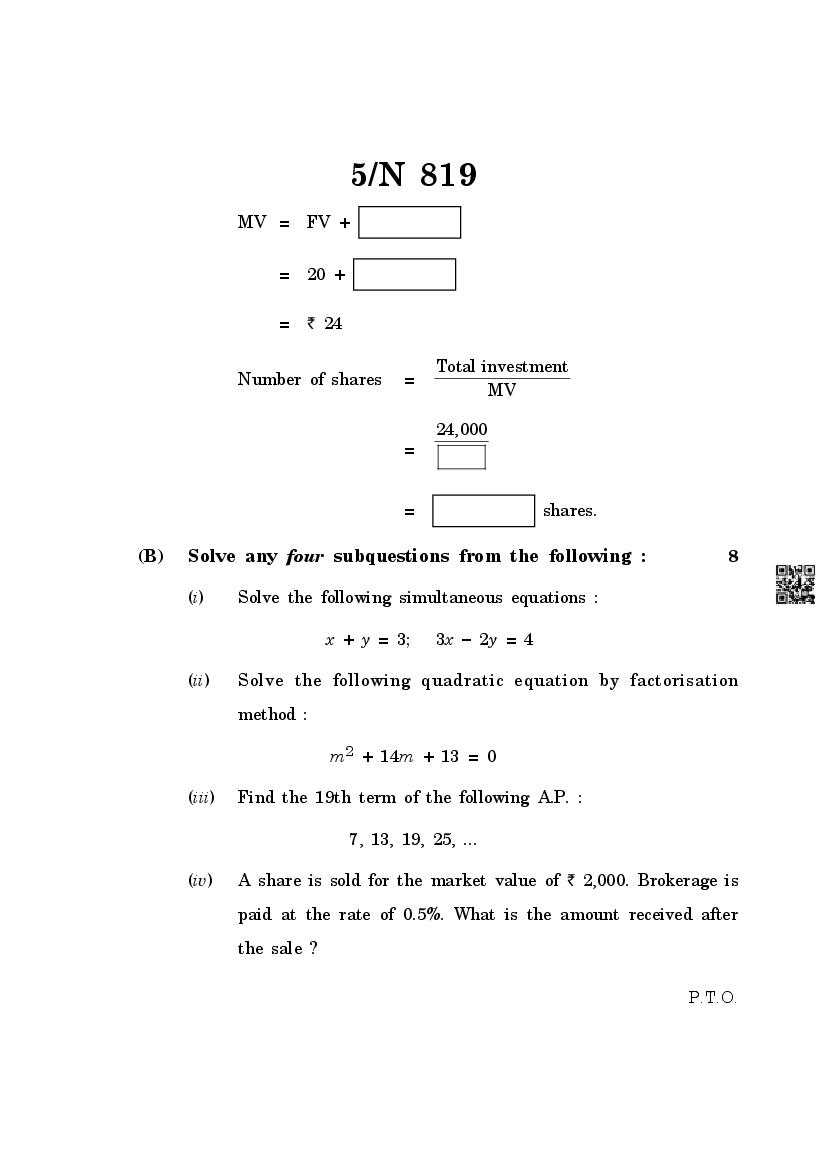 | More Question Papers of This Class | Maharashtra Board Previous Year Question Paper of Class 10 |