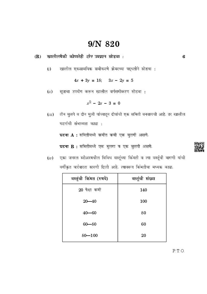 More Maharashtra SSC Maths Part 1 Previous Year Question Papers Download Link – Click Here to Download Question Paper PDF