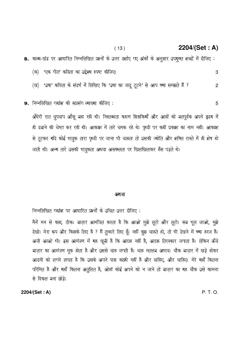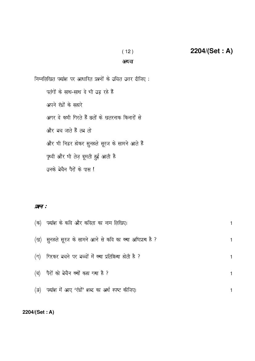 HBSE 12th Hindi Core Previous Year Question Paper PDF