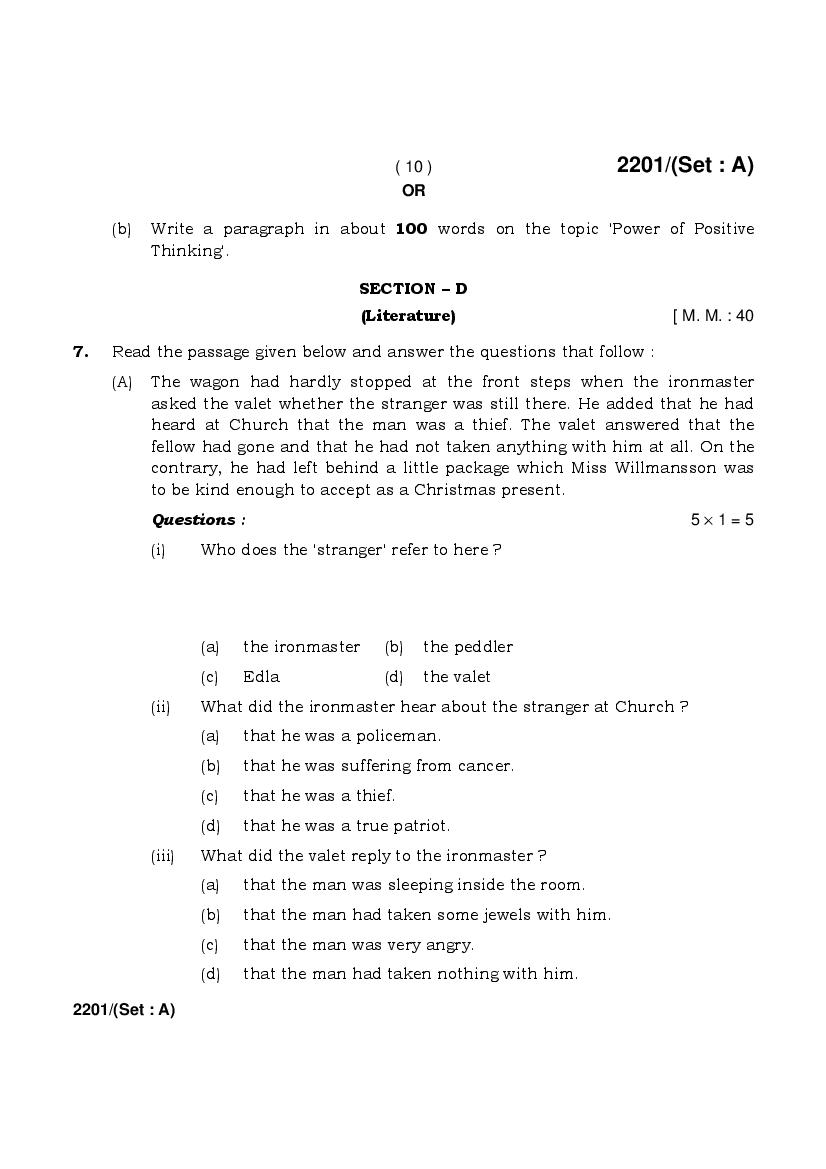 HBSE 12th English Core Question Paper 2022 – Click Here to Download Question Paper PDF