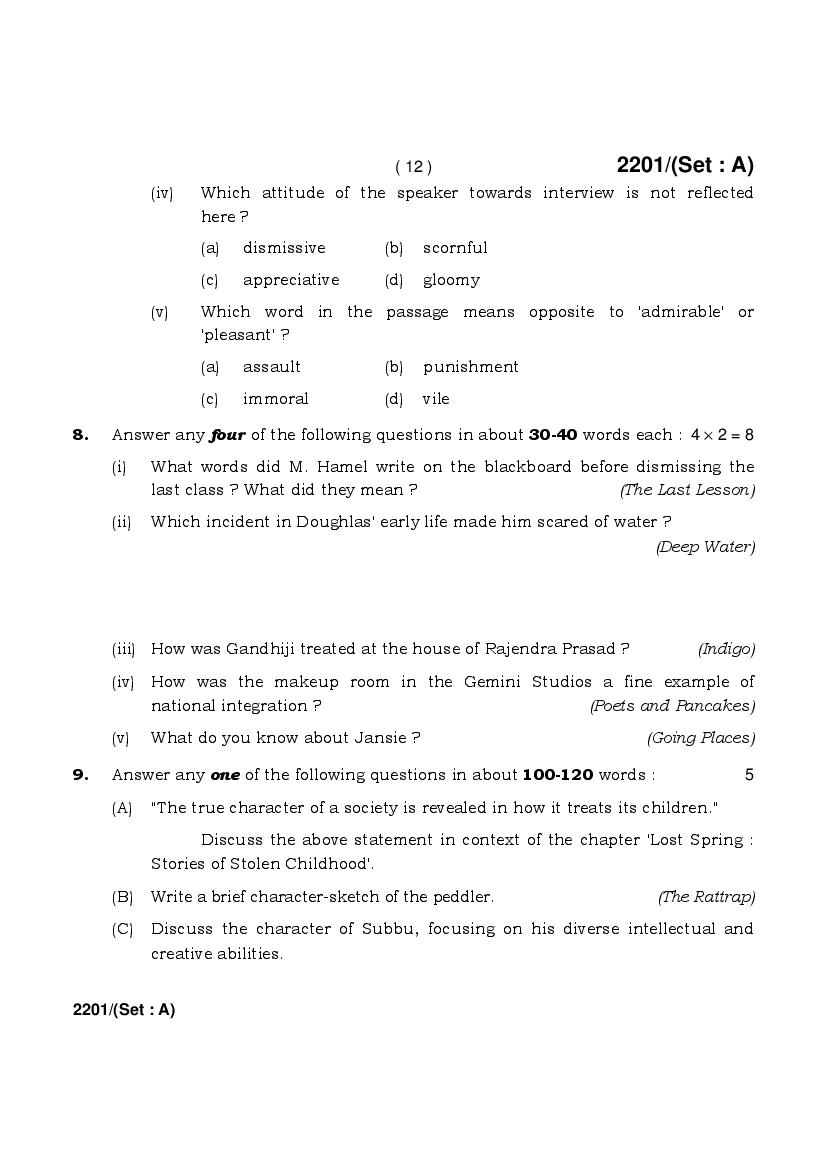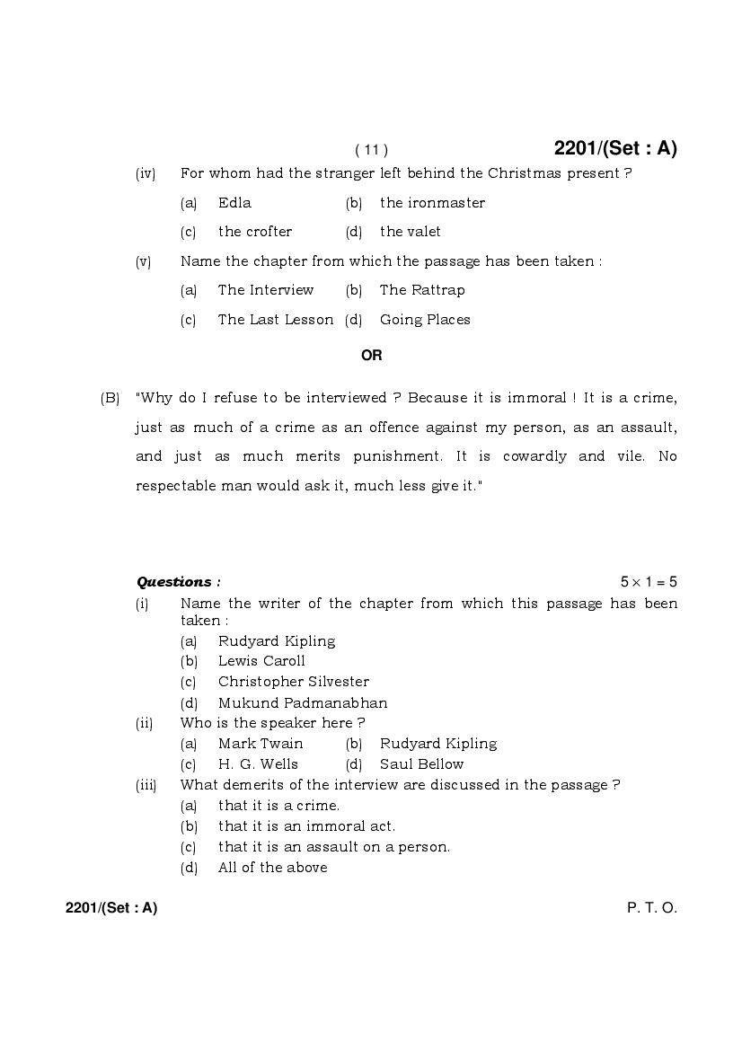 | Study Material Here | Haryana Board Previous Year Question Papers for Class 12th English Core |