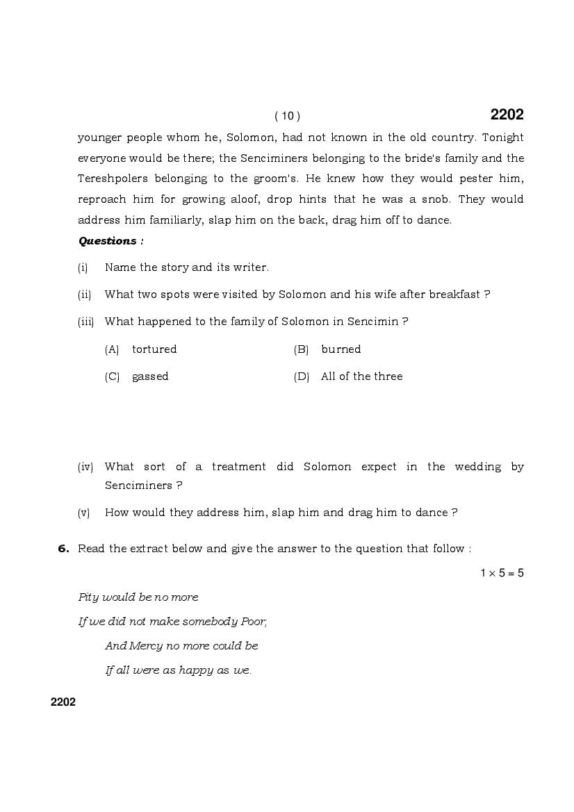HBSE 12th English Elective Question Paper 2022 – Click Here to Download Question Paper PDF