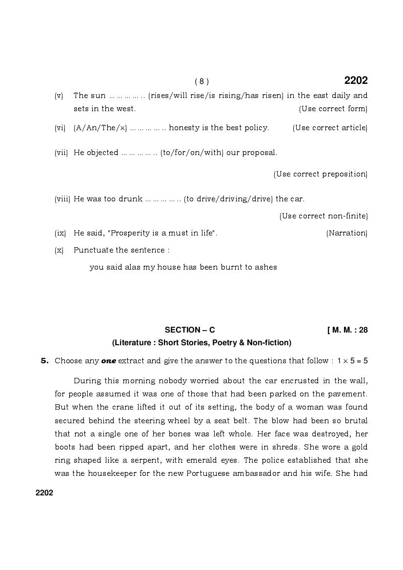 | Study Material Here | Haryana Board Previous Year Question Papers for Class 12th English Elective |