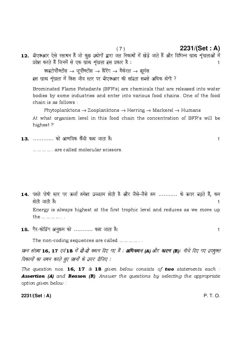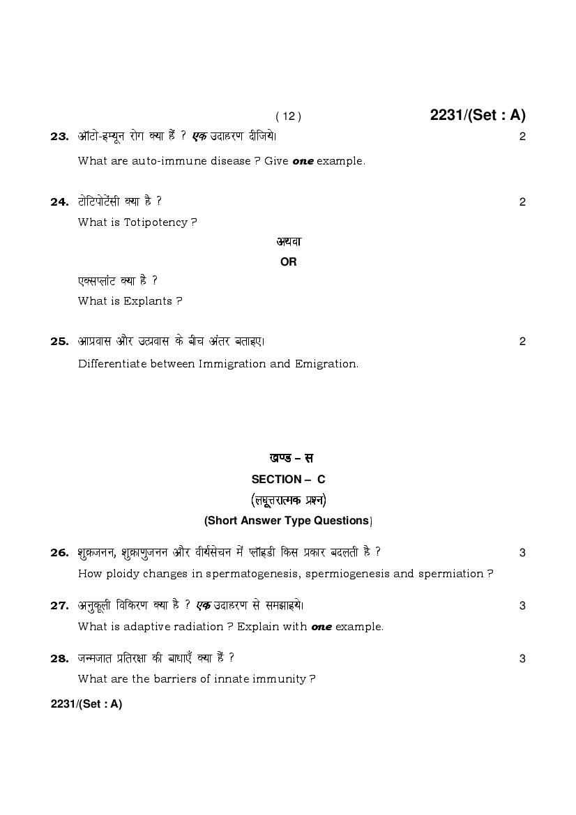 More HBSE 12th Biology Question Paper – Click Here for more PYQP PDF