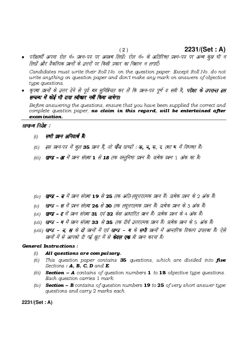 | More Old Papers for This Class | Haryana Board Previous Year Question Papers for Class 12th |