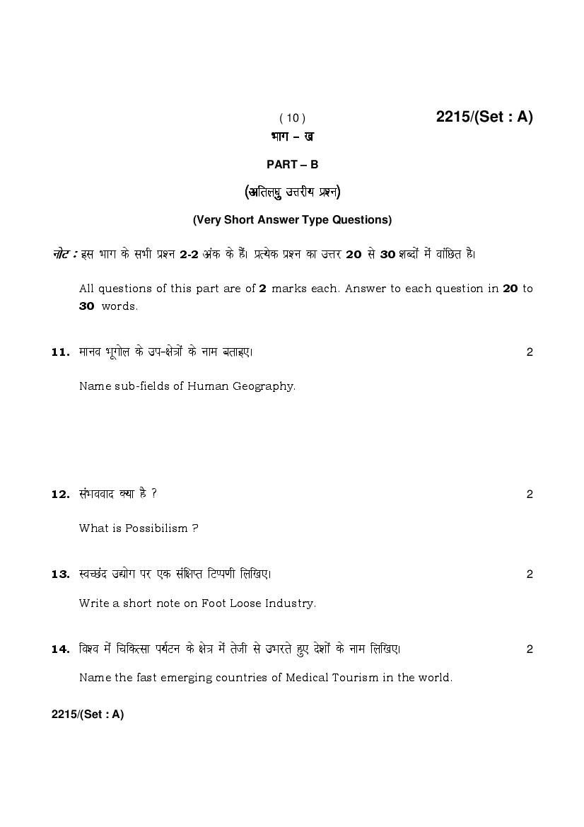 HBSE 12th Geography Previous Year Question Papers