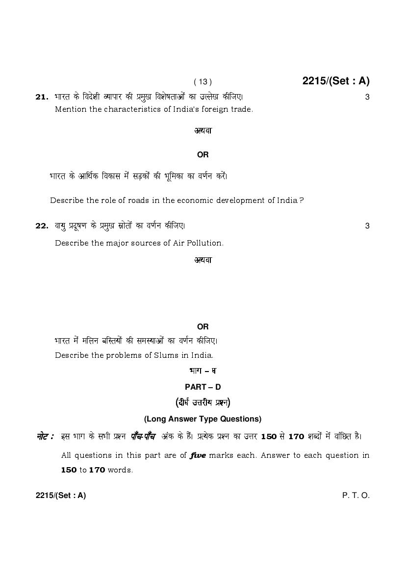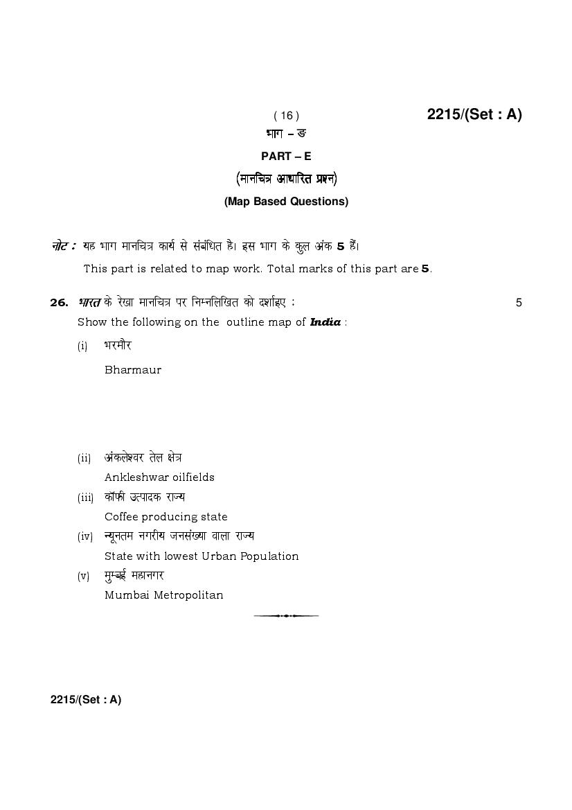 HBSE Class 12 Question Paper 2025 Geography View Download