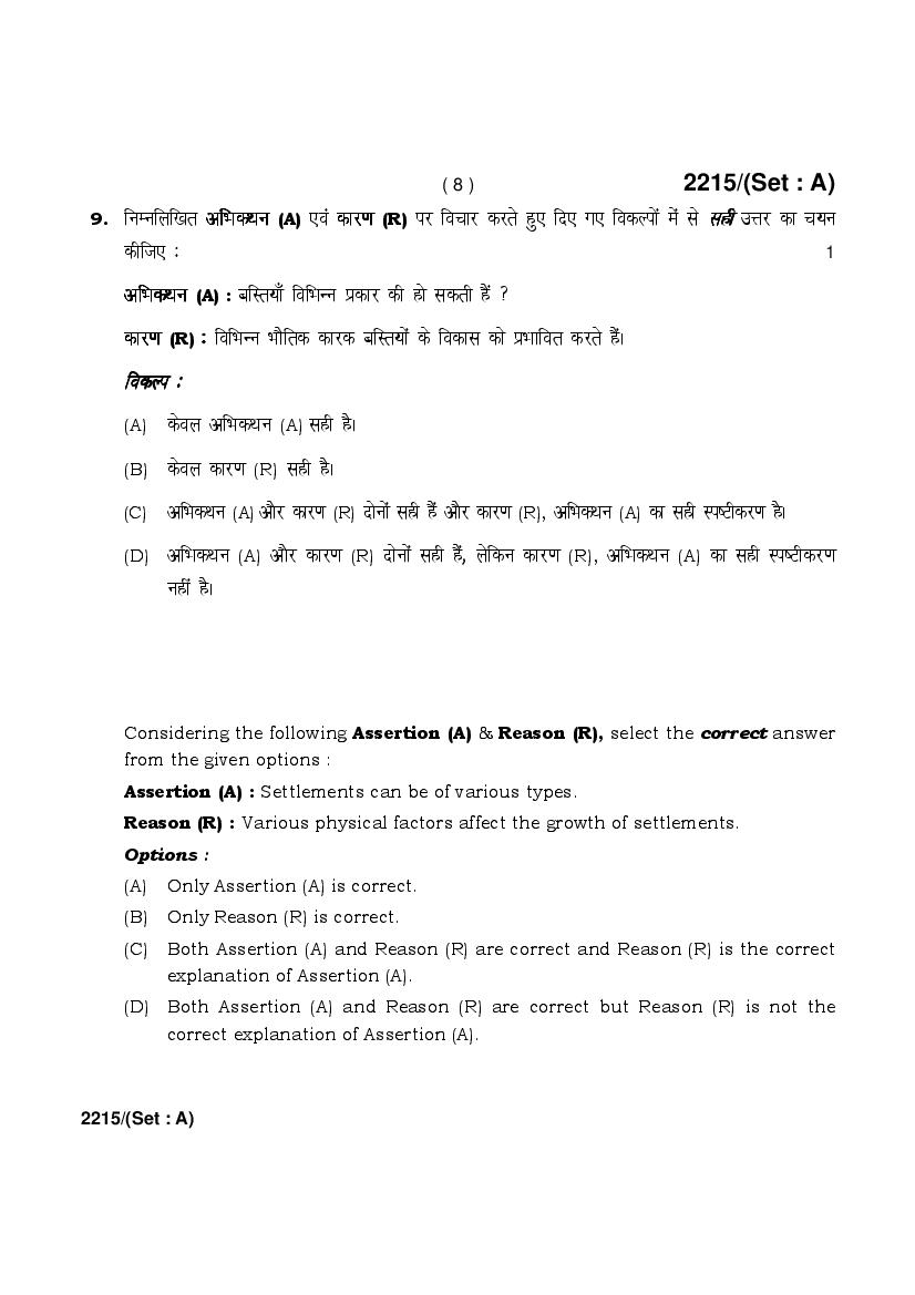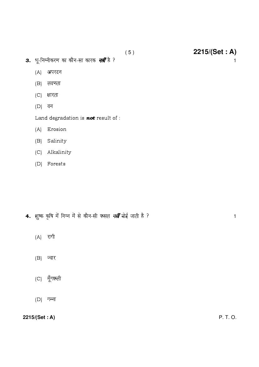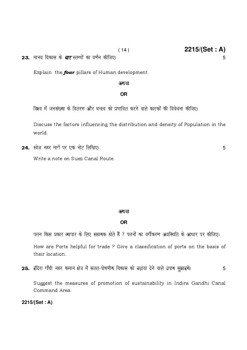 HBSE 12th Geography Previous Year Question Paper PDF