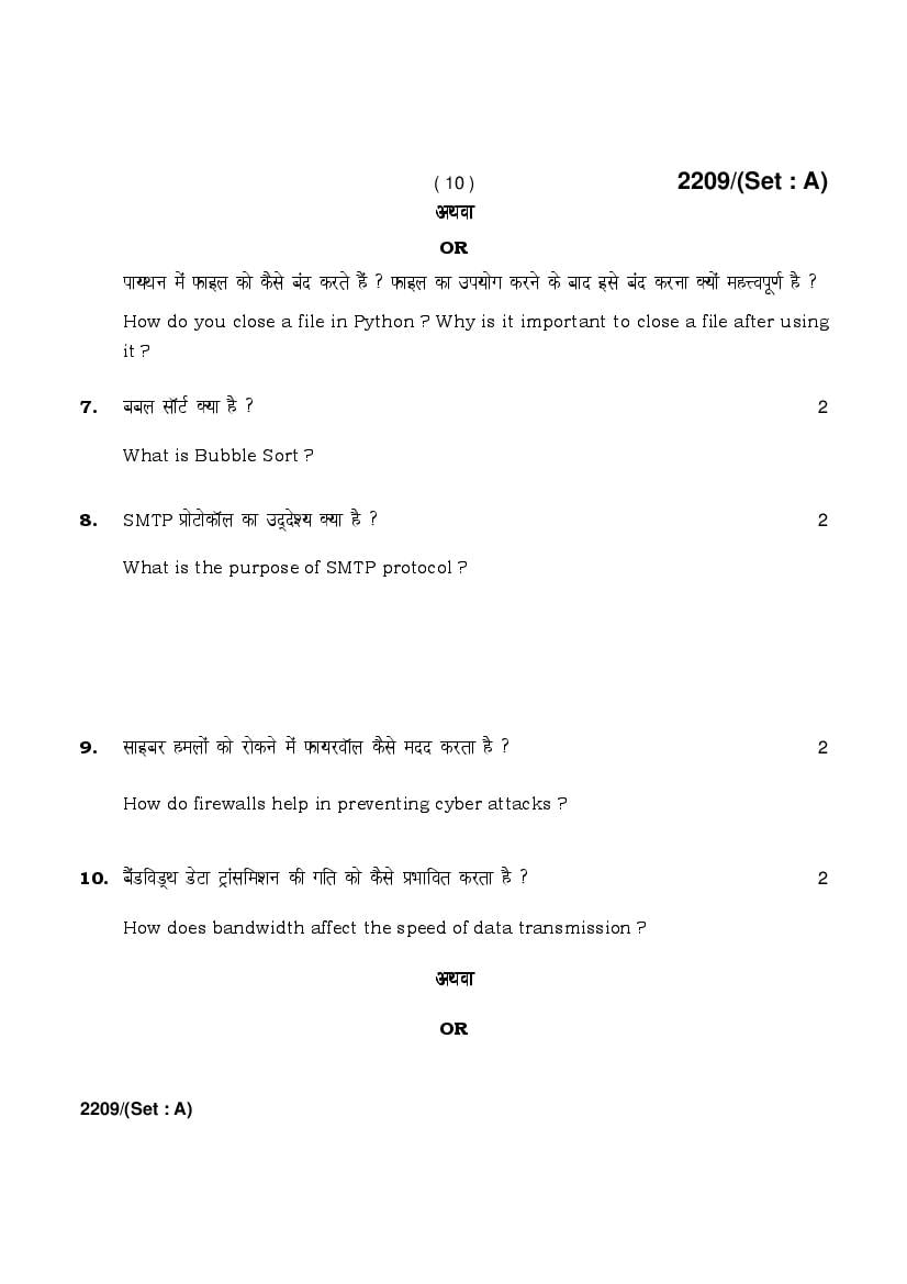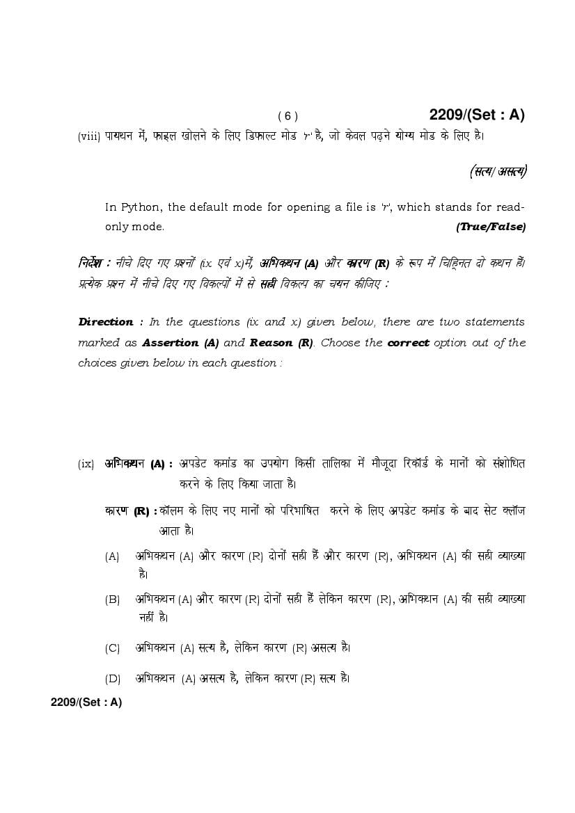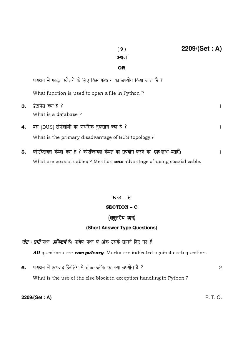 More HBSE 12th Computer Science Question Paper – Click Here for more PYQP PDF