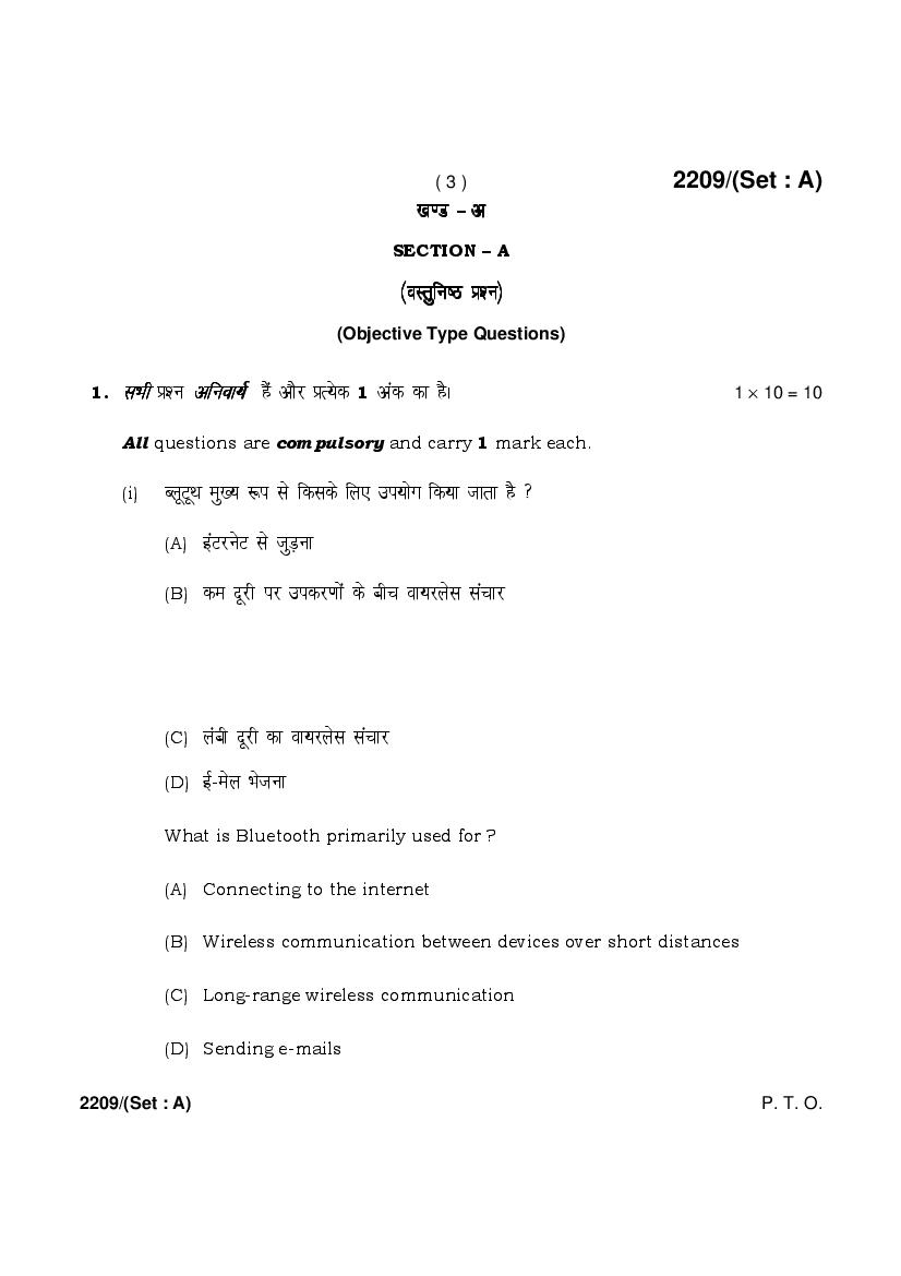 HBSE 12th Computer Science Previous Year Question Paper PDF