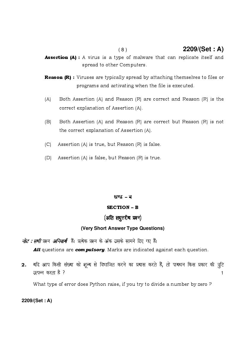 HBSE 12th Computer Science Previous Year Question Papers