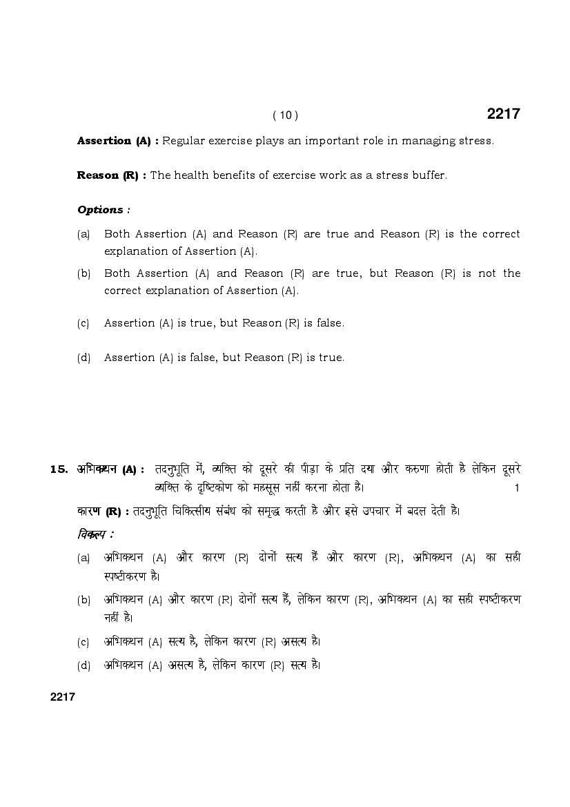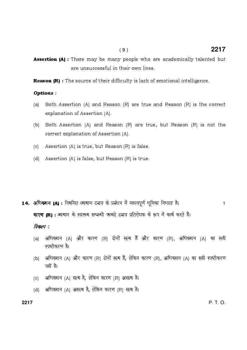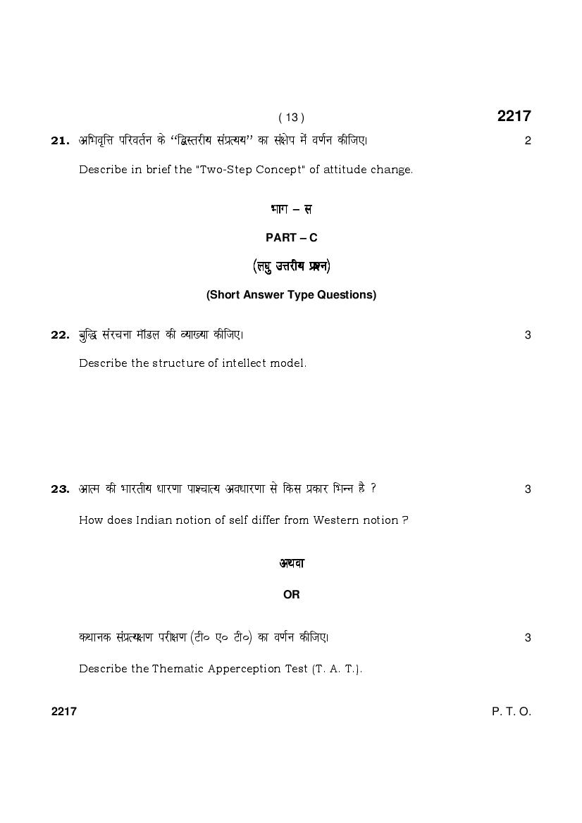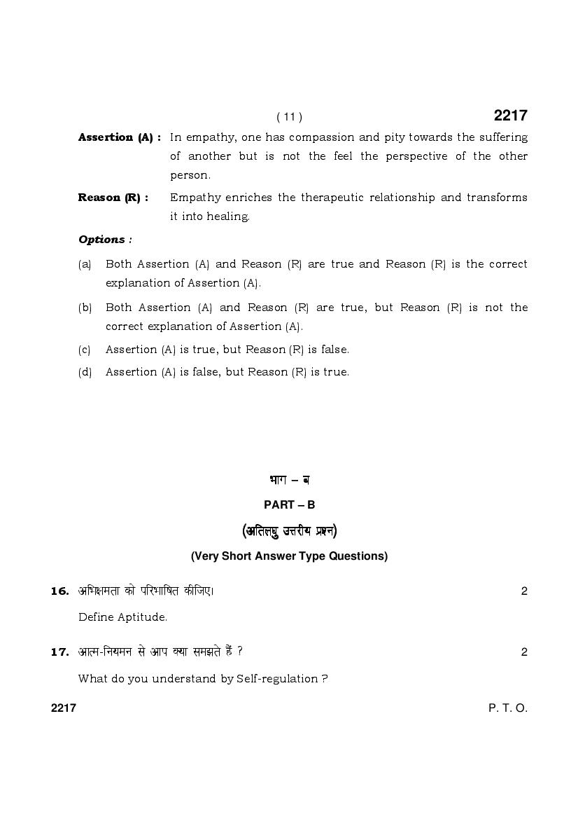HBSE Class 12 Question Paper 2025 Psychology View Download