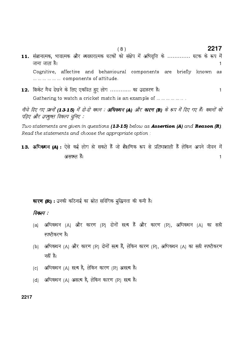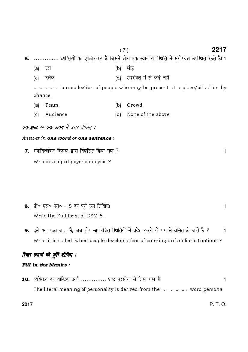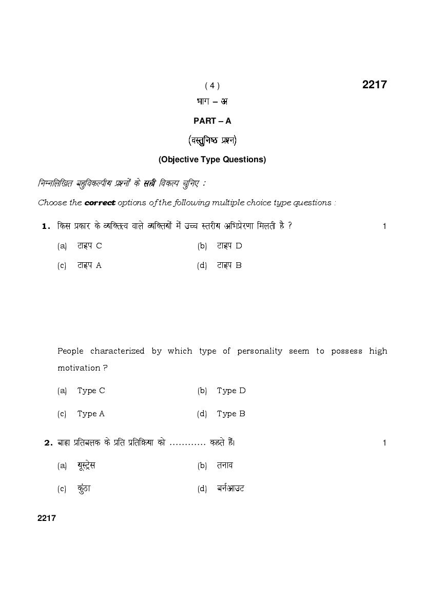 HBSE 12th Psychology Previous Year Question Papers