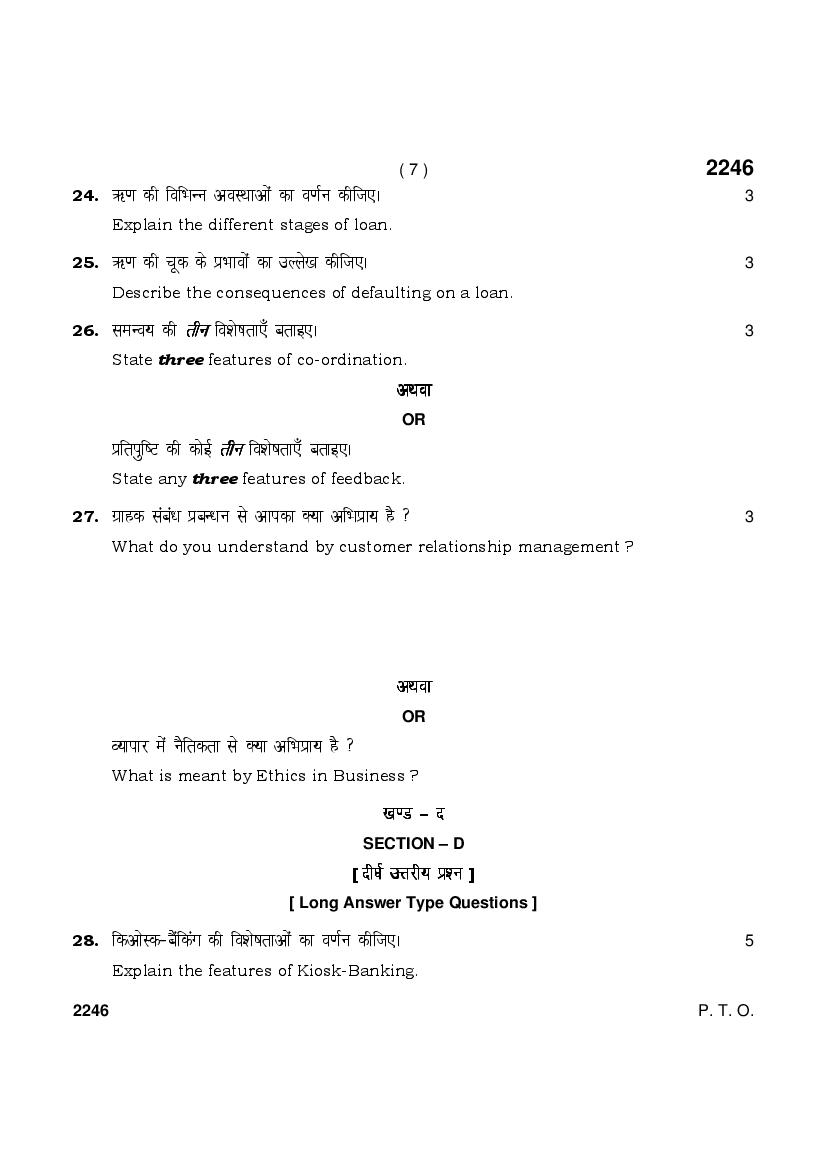 More HBSE 12th Bankign Finance Insurance Question Paper – Click Here for more PYQP PDF