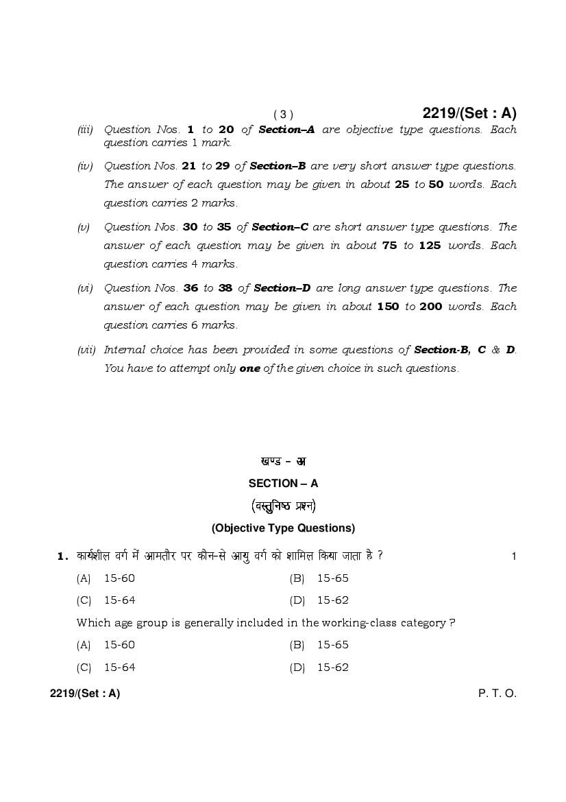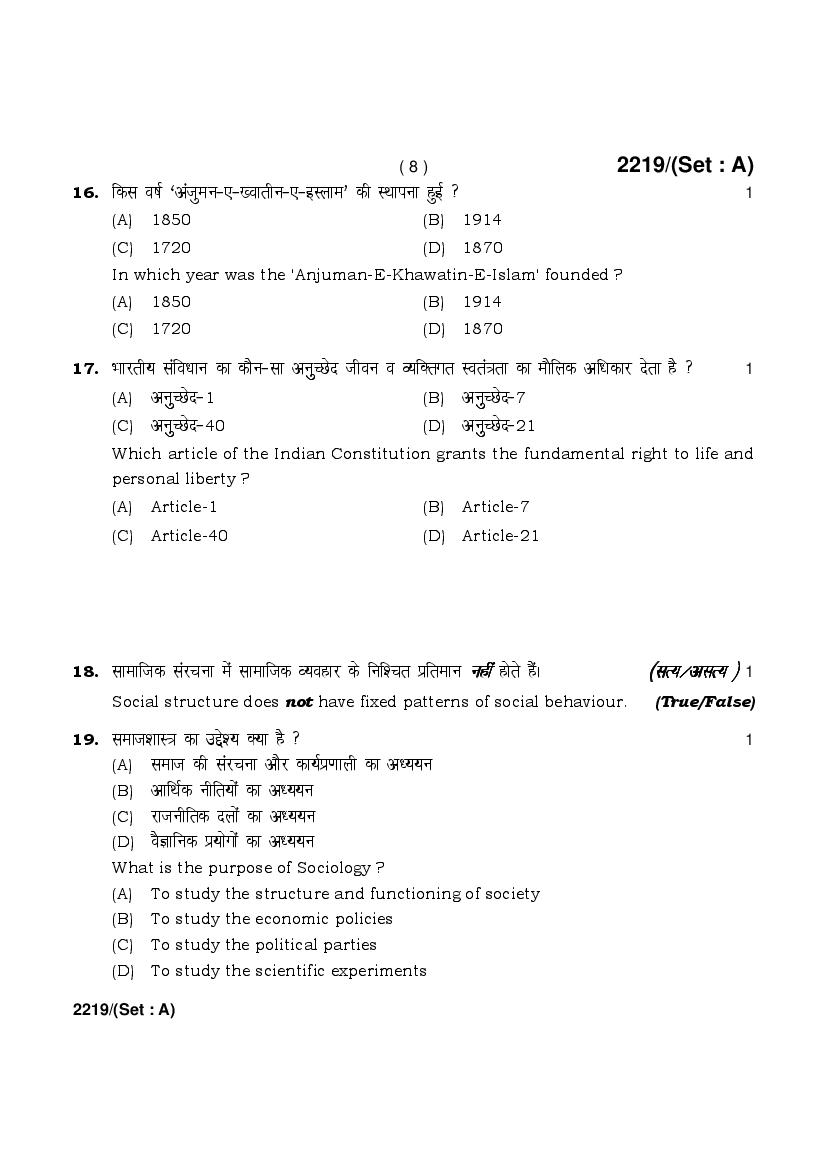 HBSE 12th Sociology Previous Year Question Papers
