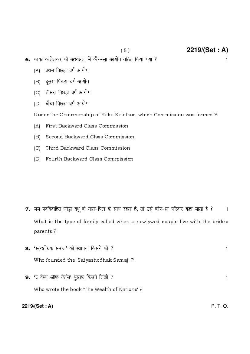 More HBSE 12th Sociology Question Paper – Click Here for more PYQP PDF