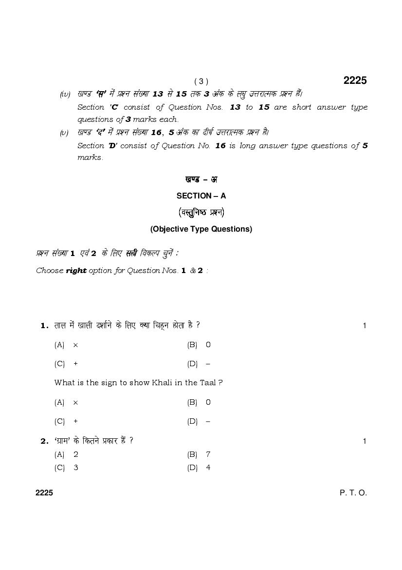 HBSE 12th Music Instrumental Previous Year Question Papers