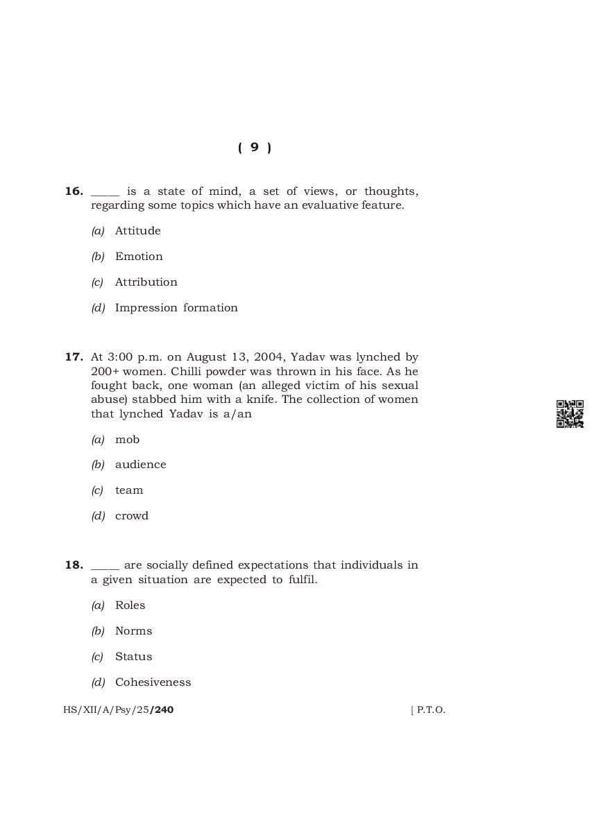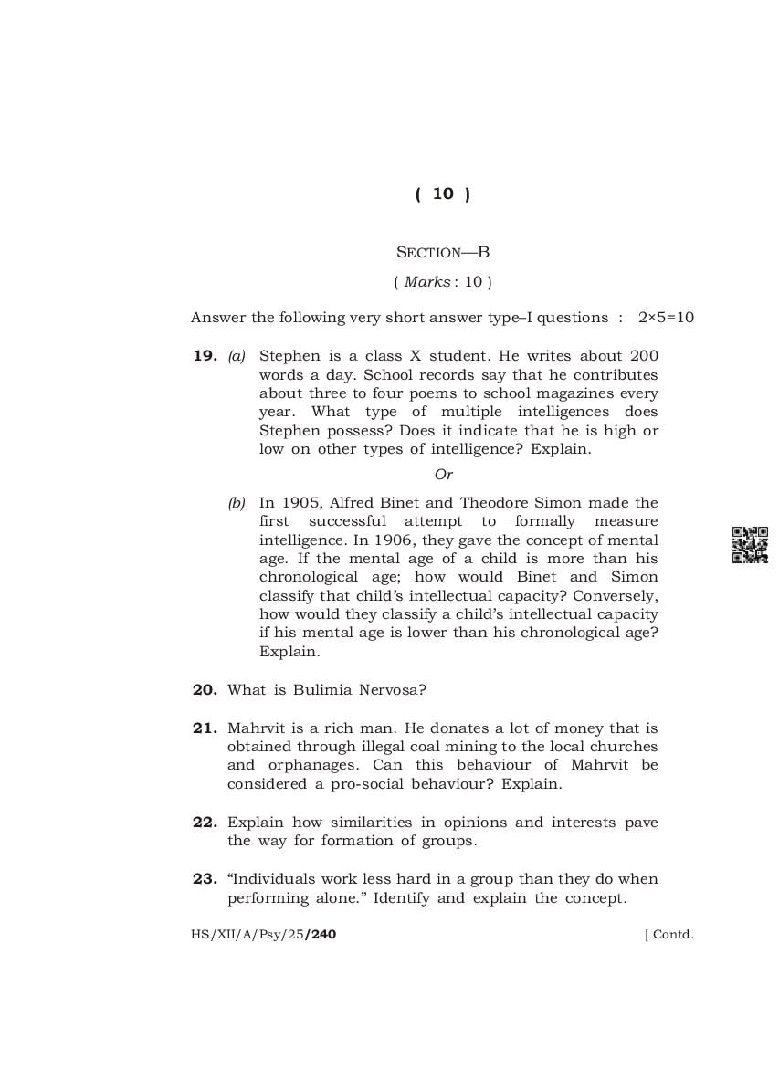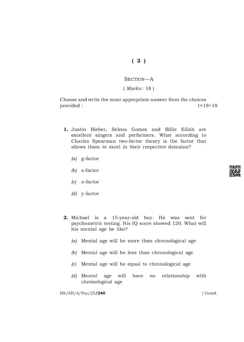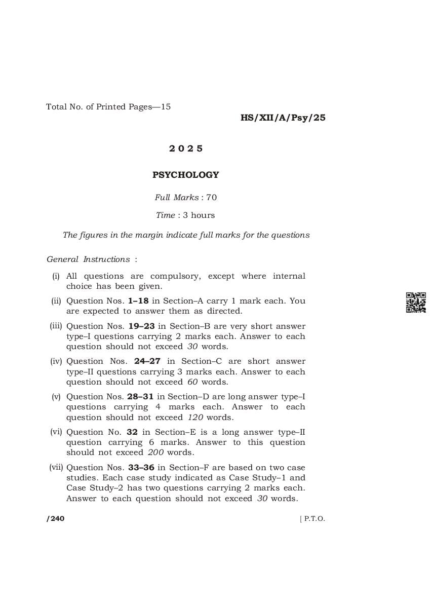 | Paper | Meghalaya Board Class 12 Question Paper of Psychology |
