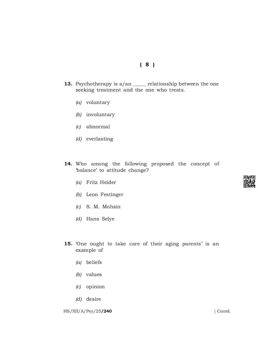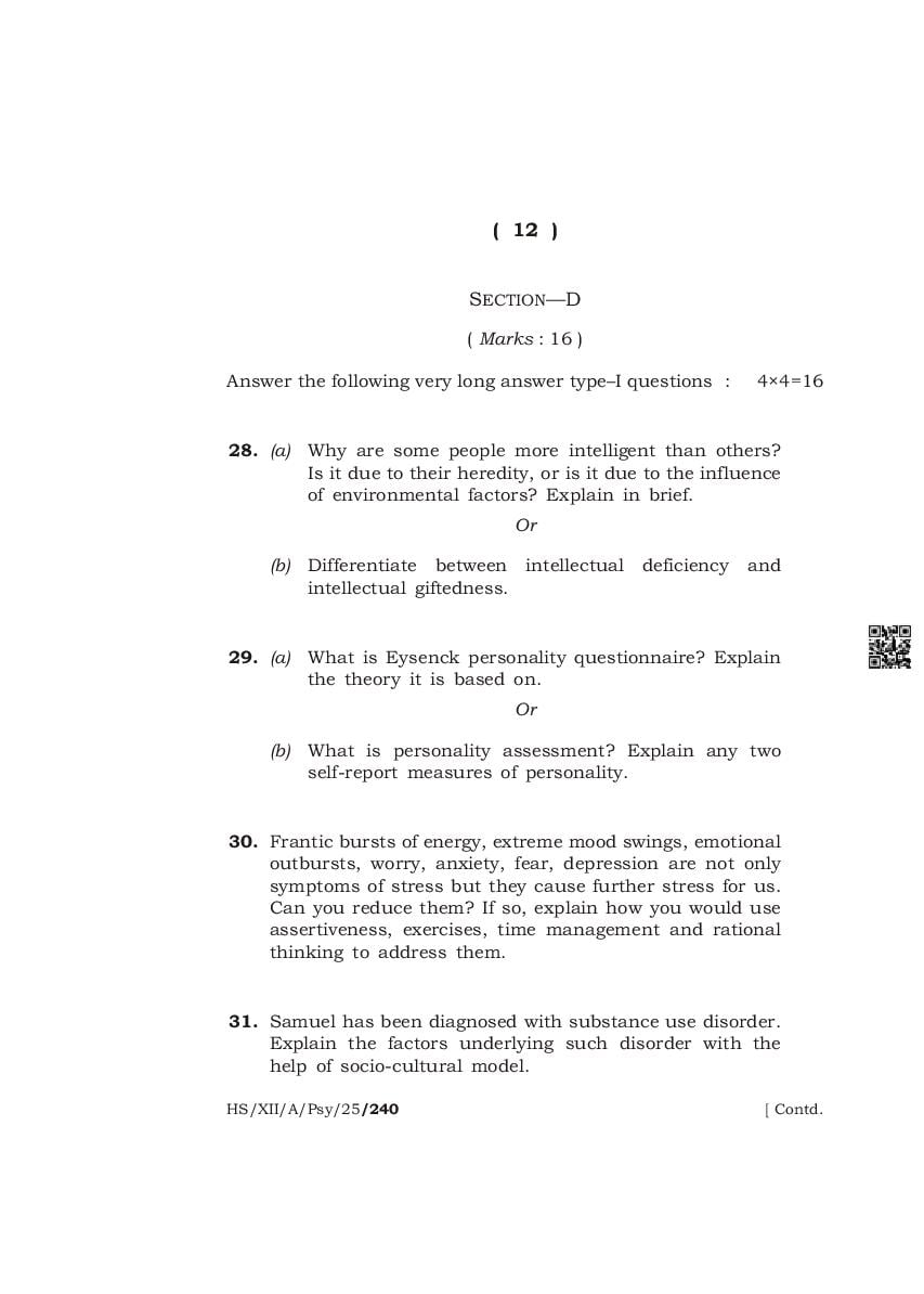 If you have any queries on Meghalaya Board (MBOSE) Class 12 Question Paper 2025 for Psychology, then please ask in comments below.