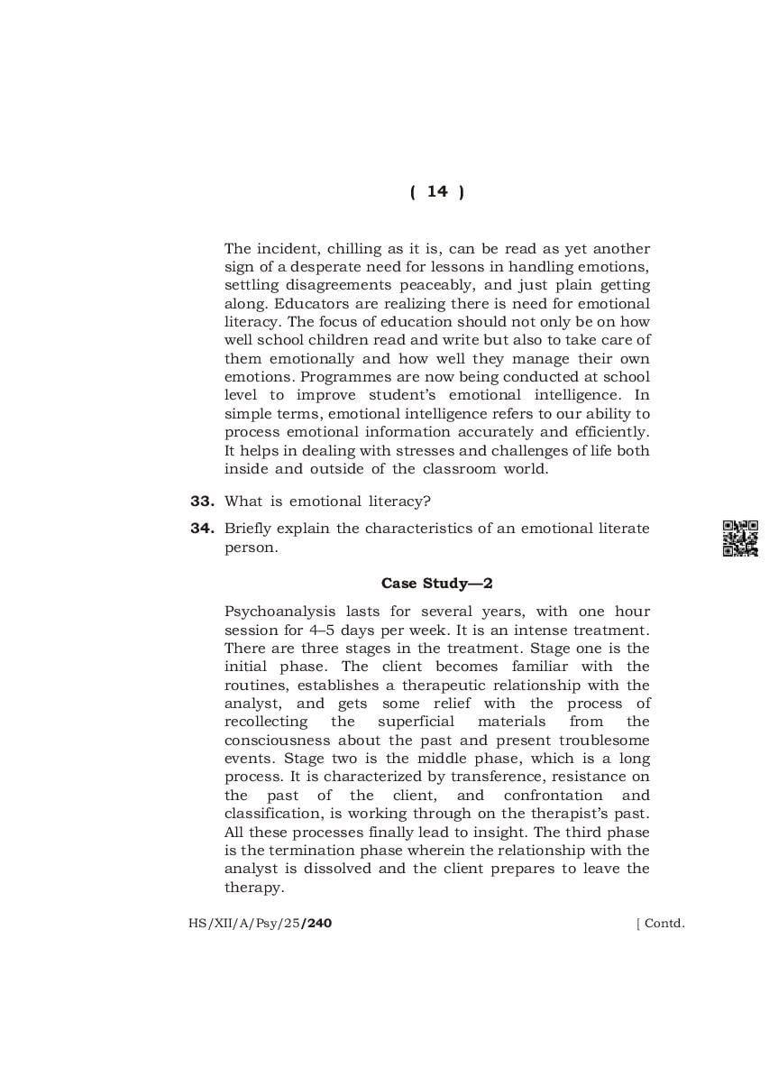 The important highlights of this HSSLC Psychology question paper are as follows.