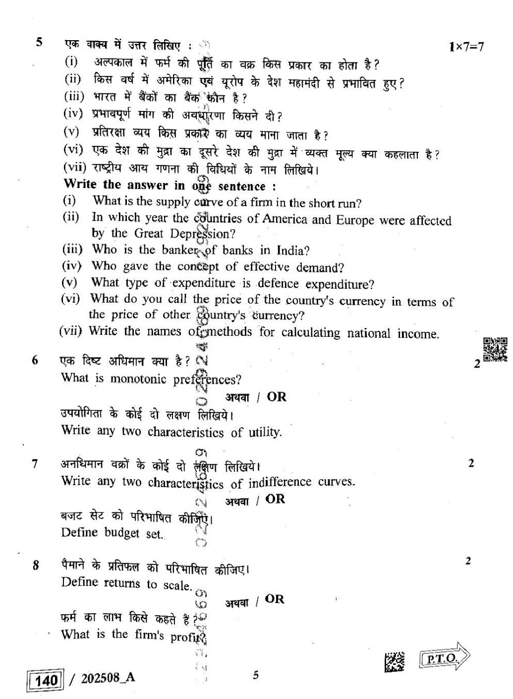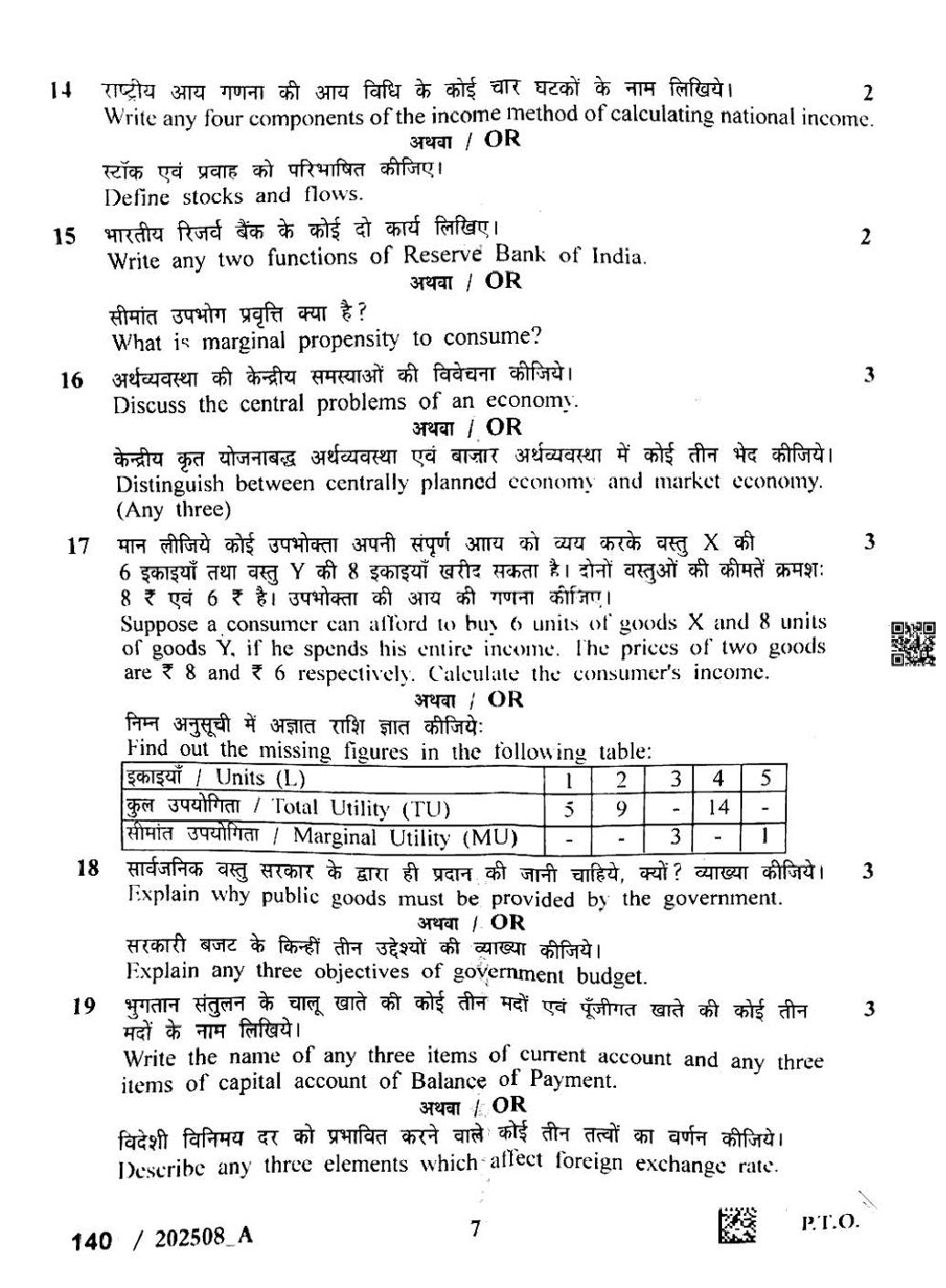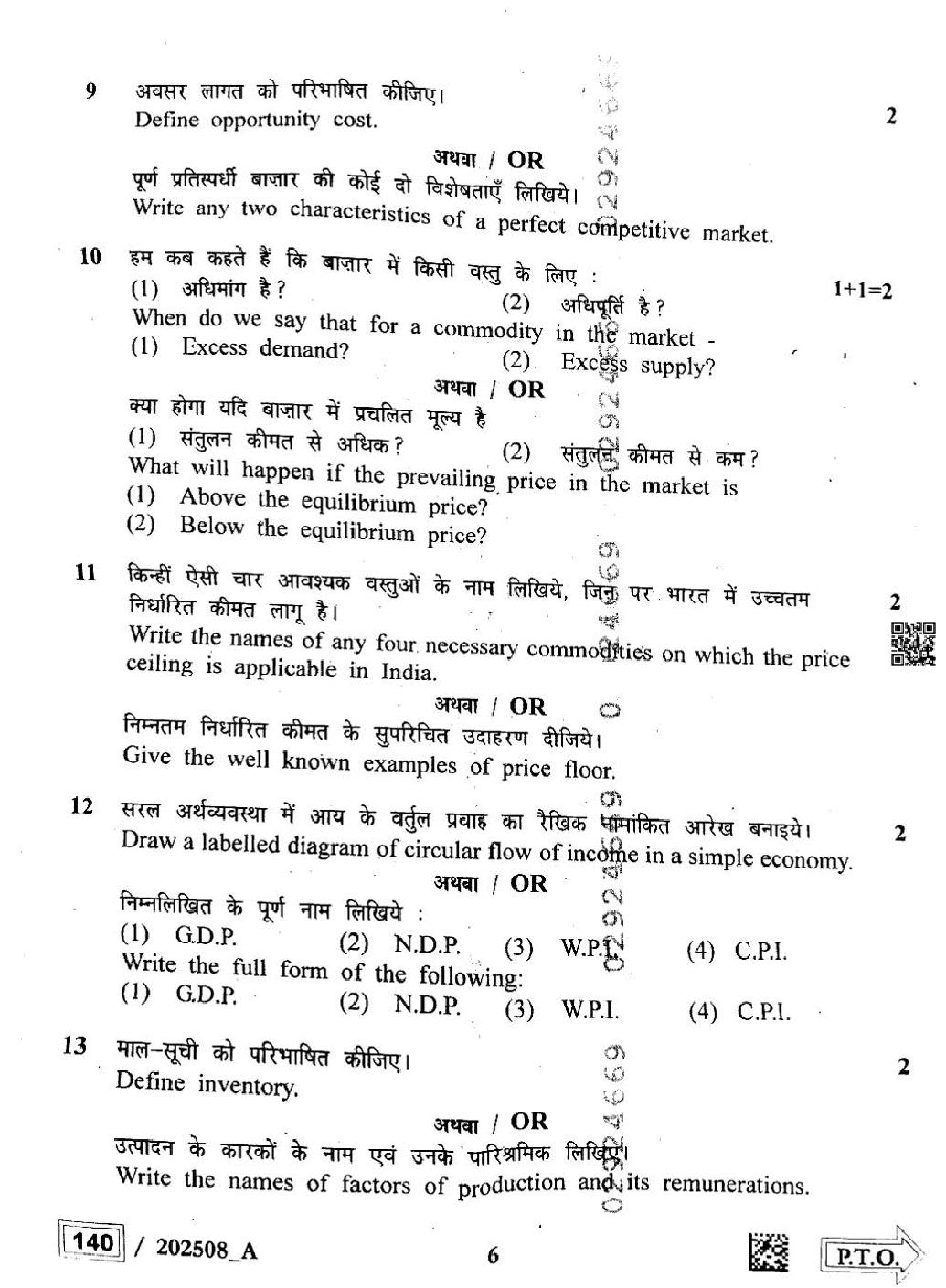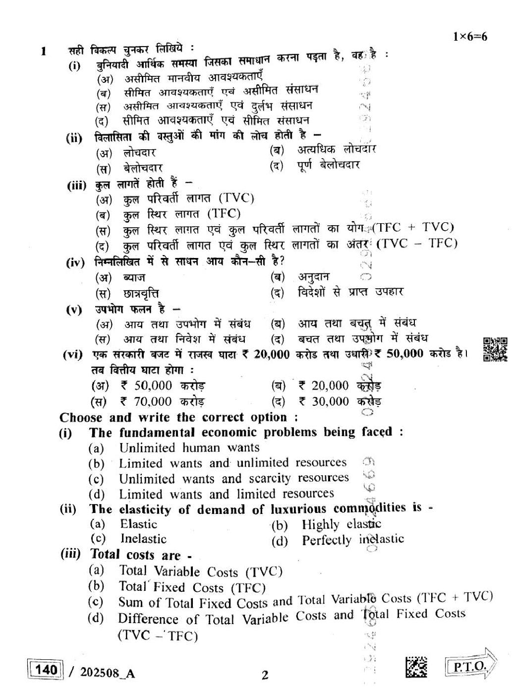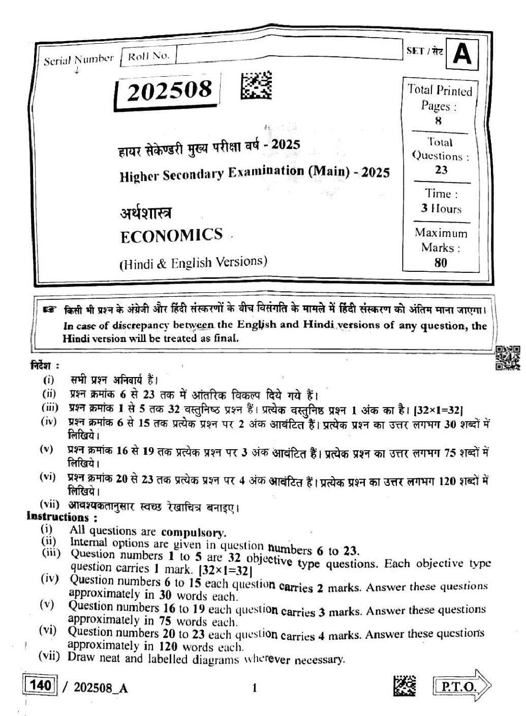 MP Board Class 12 Question Paper 2025 Economics View Download