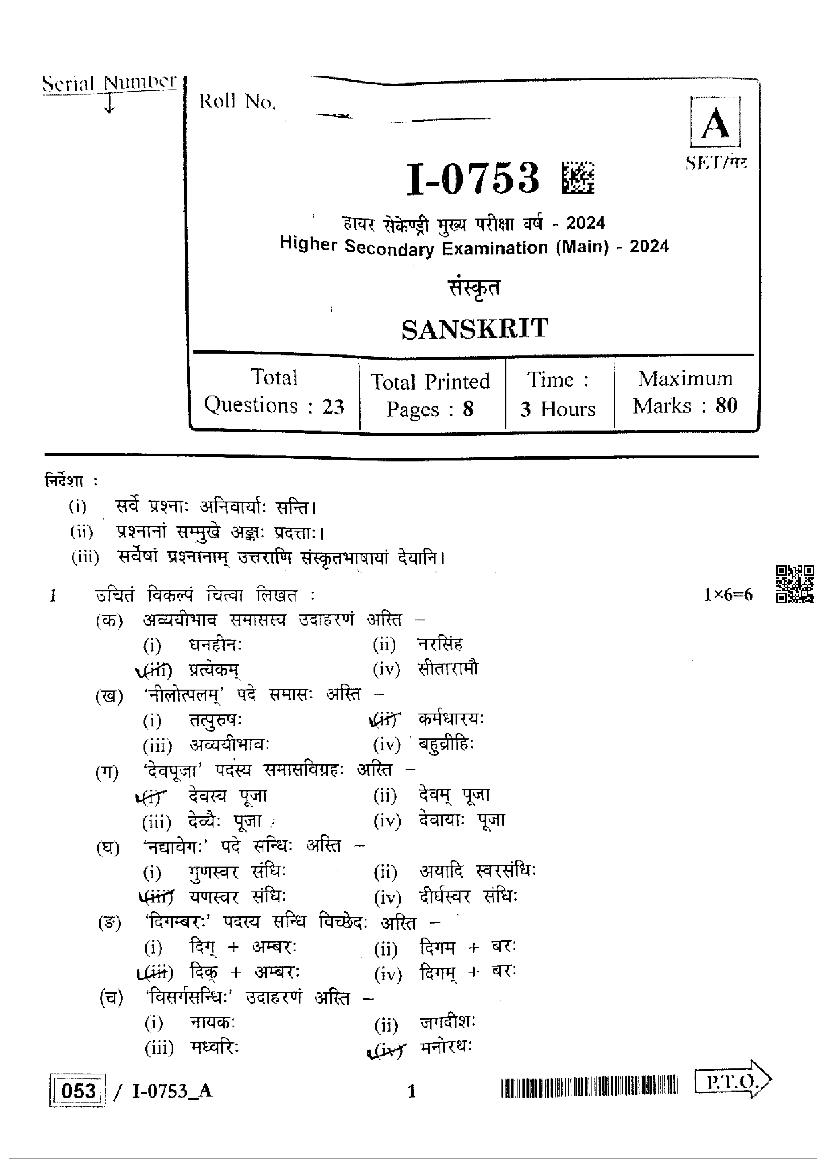 It is a good idea to download the class 12 question paper from aglasem for Sanskrit General subject, using above link or view pdf below.