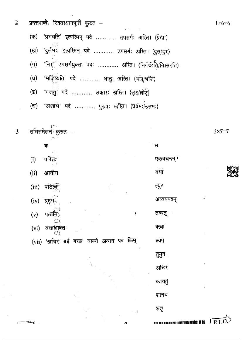 MP Board Class 12 Question Paper 2024 Sanskrit View Download
