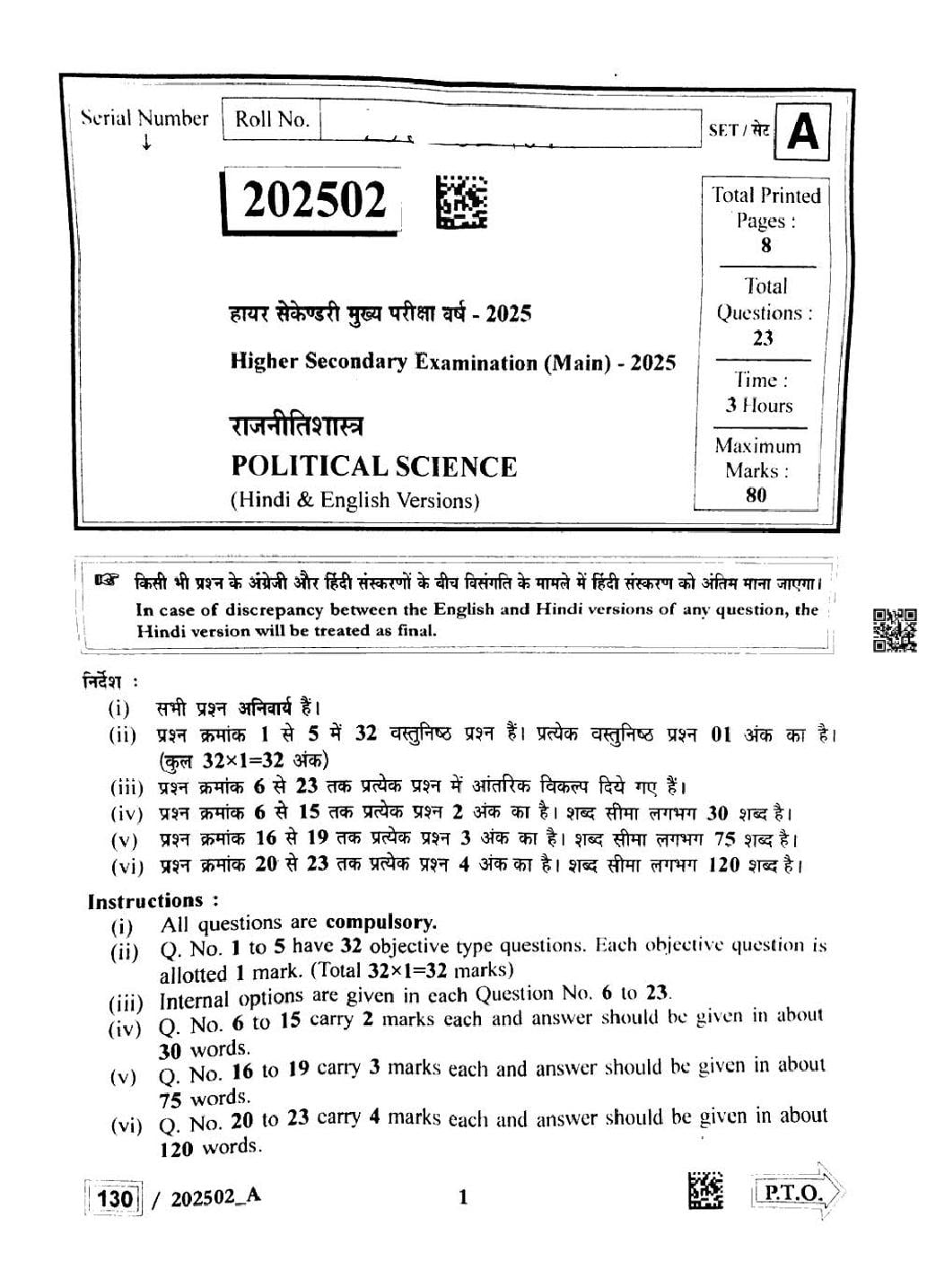 MP Board Class 12 Political Science Question Paper PDF is given below. If you are going to appear in the 12th Class Political Science examination will need this MP Board Class 12 Political Science Previous Year Question Paper. These MP board exam question papers will help you a lot. Here we are providing Regular question papers of previous years of Political Science examinations asked by Board of Secondary Education, Madhya Pradesh. Here on this page you can get MPBE 12th Std 1} Question Paper 2025, 2024, 2023 and more.