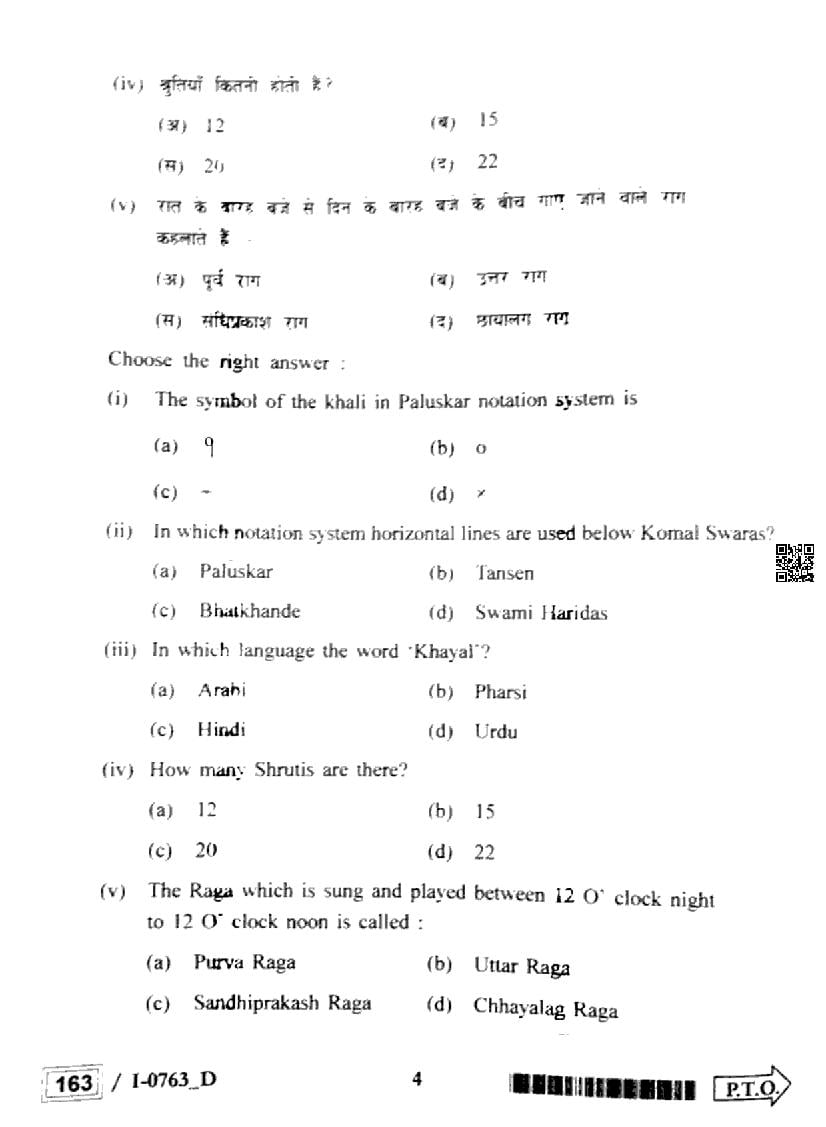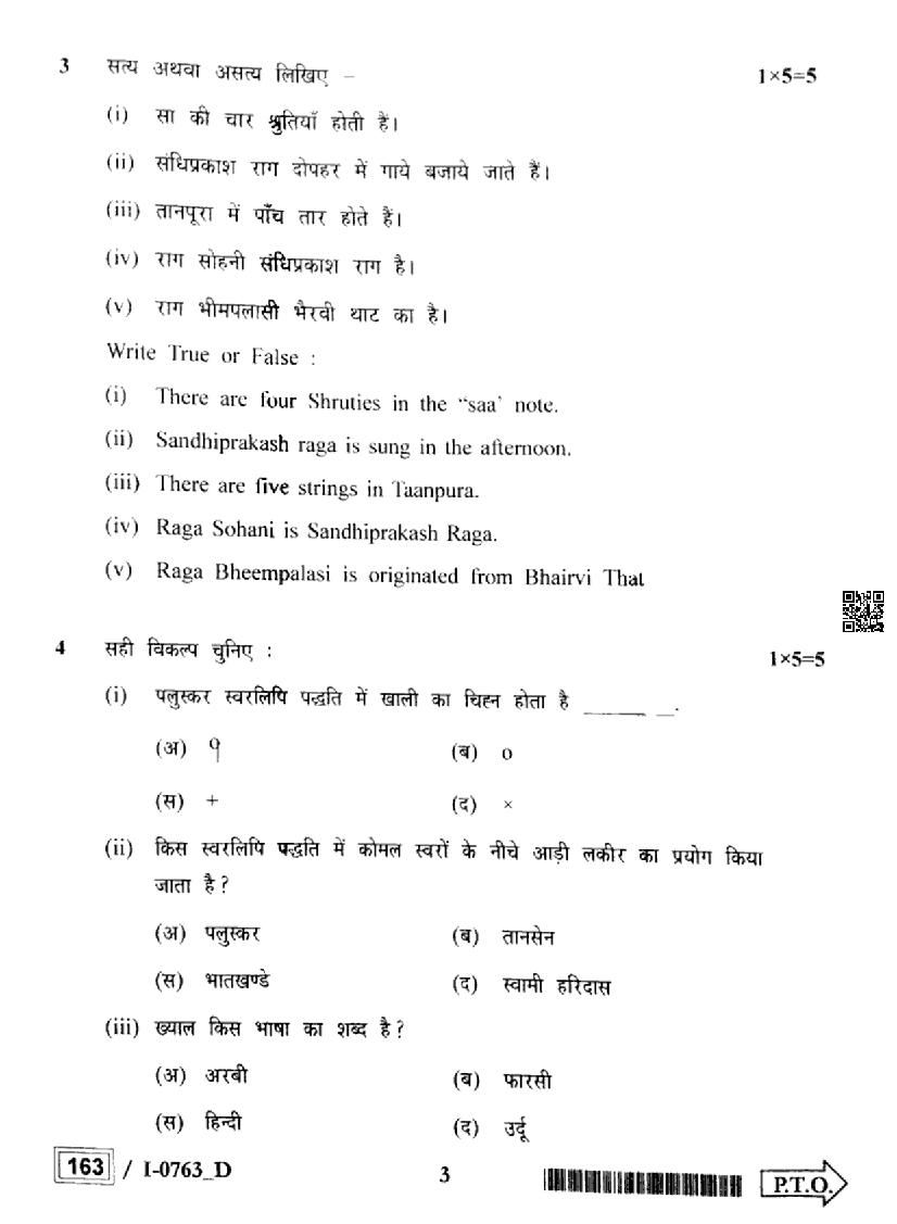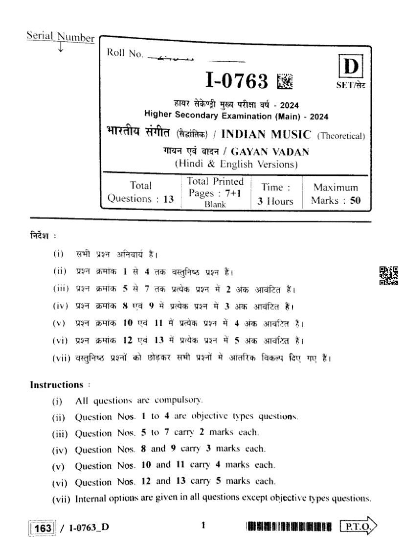 MP Board Class 12 Question Paper 2024 Indian Music View Download