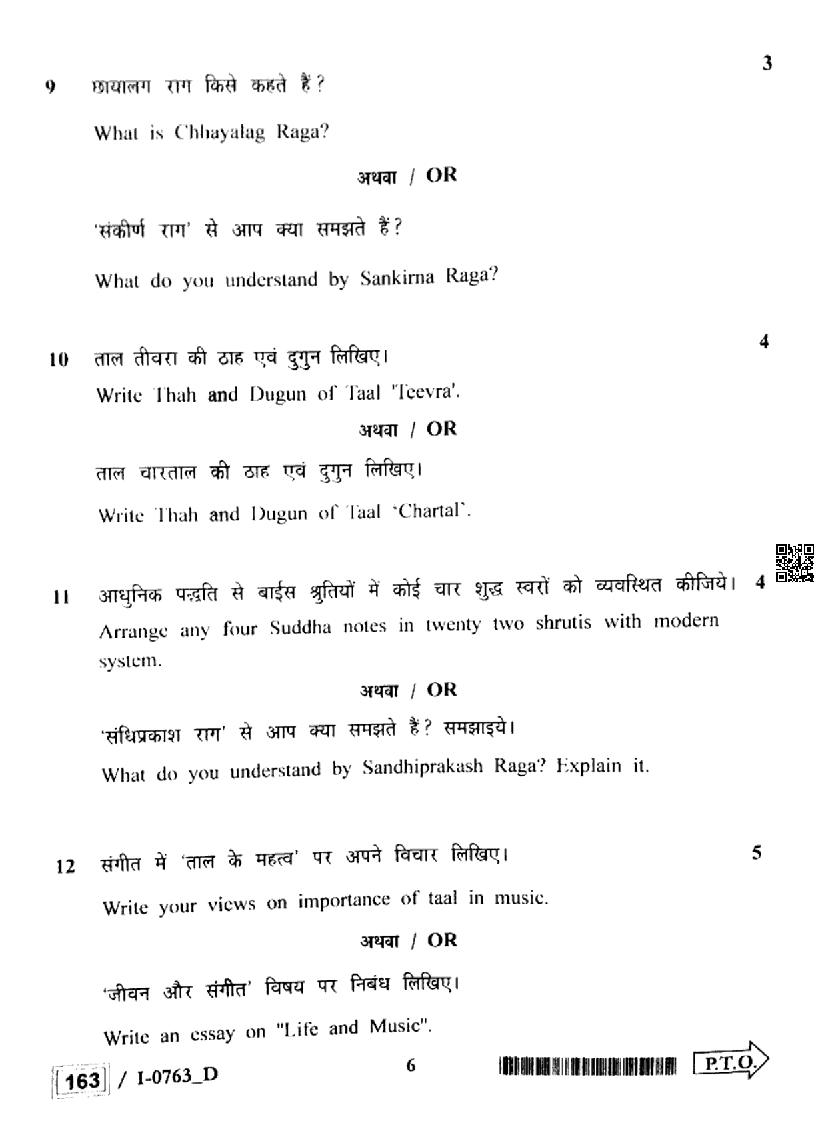 MP Board Class 12 Indian Music Question Paper