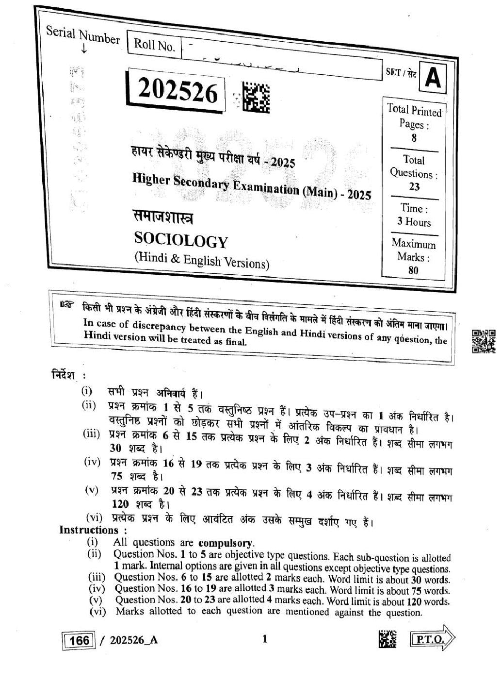 MP Board Class 12 Sociology Question Paper PDF is given below. If you are going to appear in the 12th Class Sociology examination will need this MP Board Class 12 Sociology Previous Year Question Paper. These MP board exam question papers will help you a lot. Here we are providing Regular question papers of previous years of Sociology examinations asked by Board of Secondary Education, Madhya Pradesh. Here on this page you can get MPBE 12th Std 1} Question Paper 2025, 2024, 2023 and more.