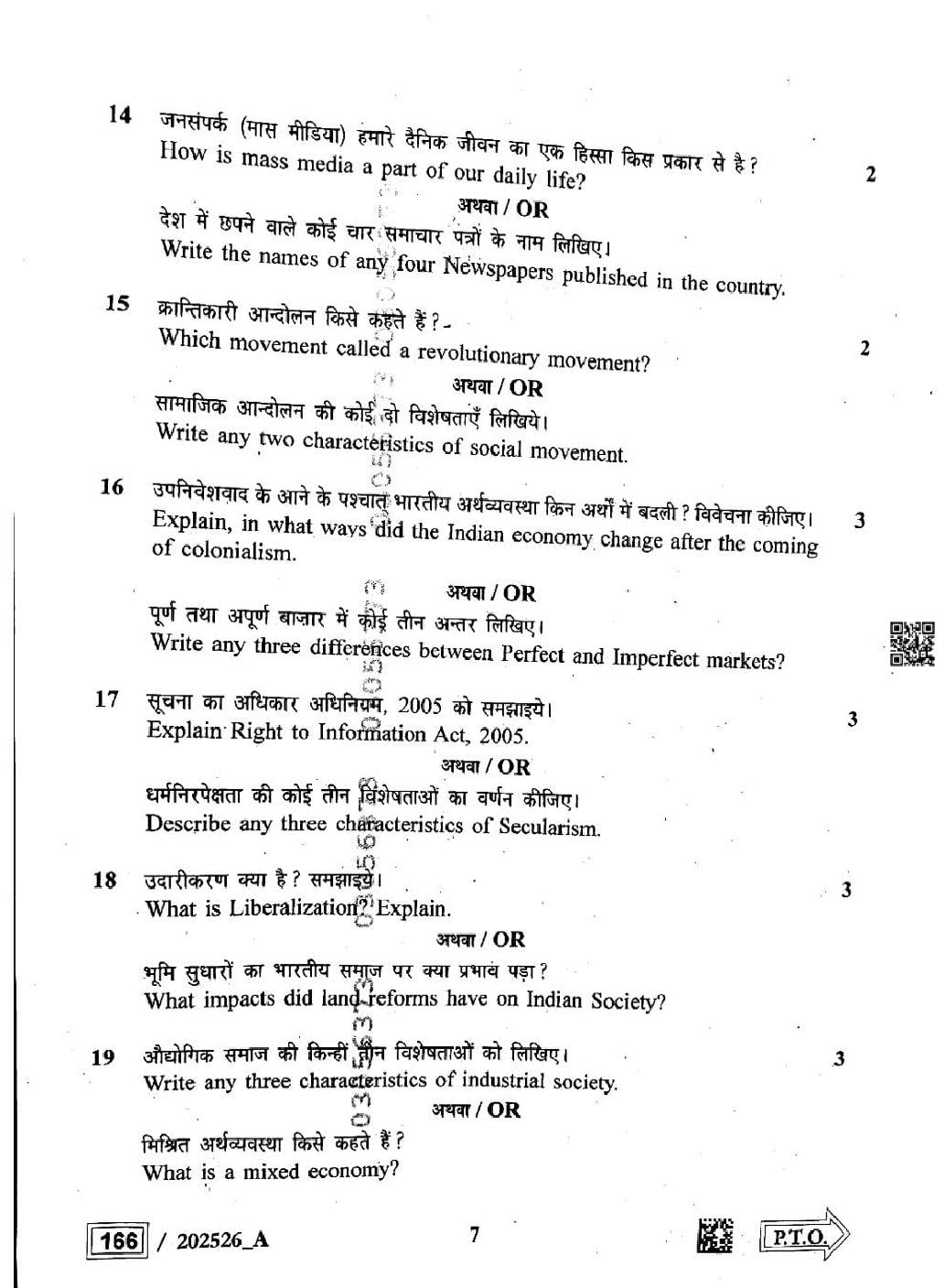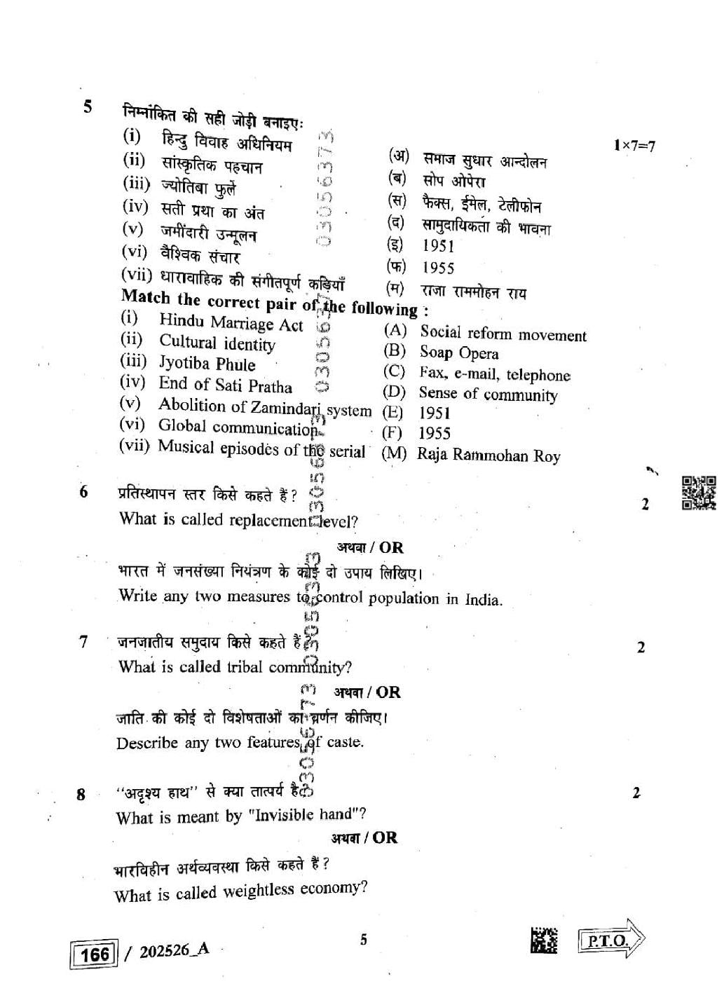 MP Board Class 12 Question Paper 2025 Sociology View Download
