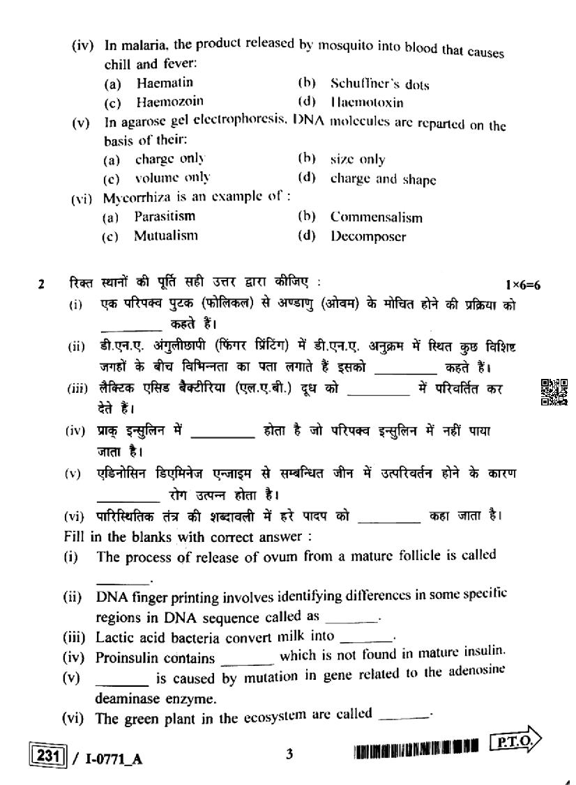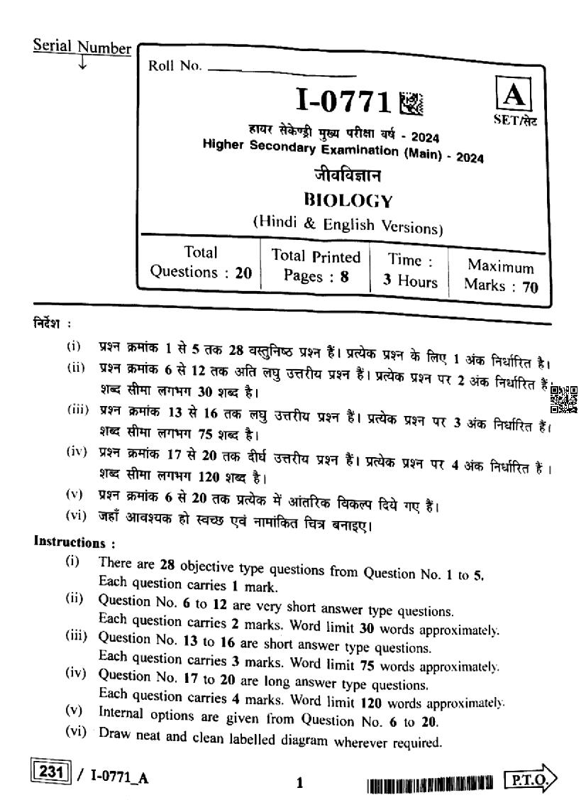 MP Board Class 12 Question Paper 2024 Biology View Download