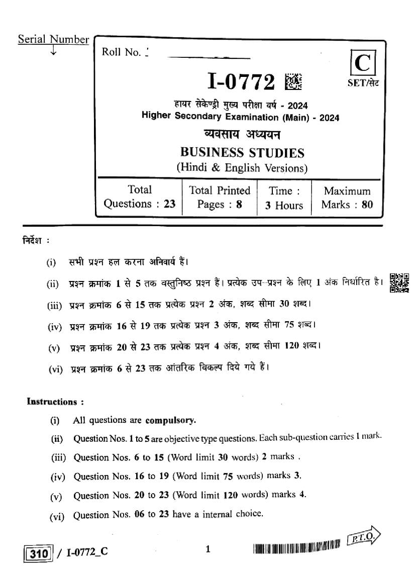 MP Board Class 12th Business Studies Question Paper 2024 PDF – Click Here to Download Question Paper