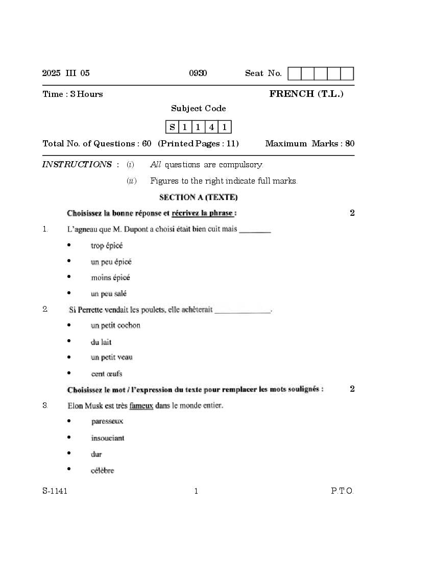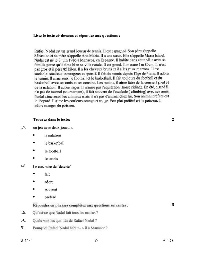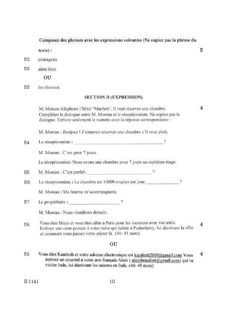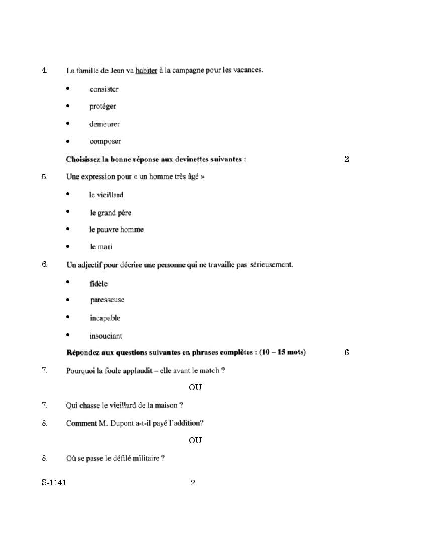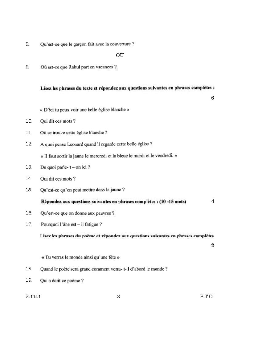 | Study Material Here | Goa Board SSC French Question Paper |