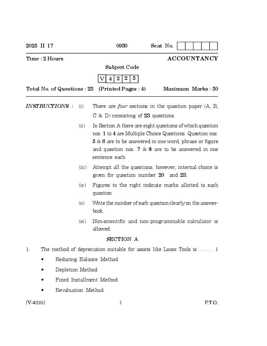 Goa Board Class 12 Question Paper 2025 Accountancy View Download
