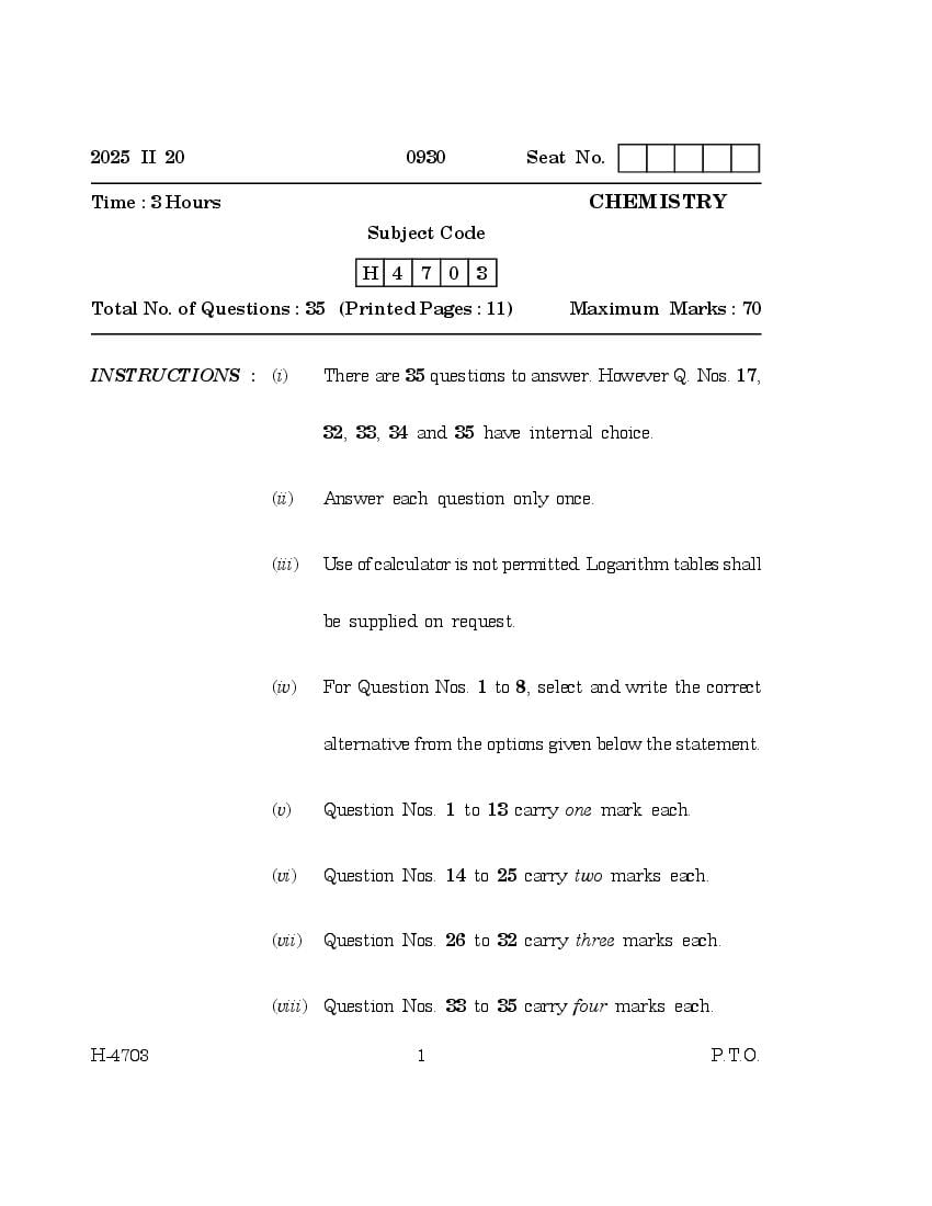 | Study Material Here | Goa Board HSSC Chemistry Question Paper |