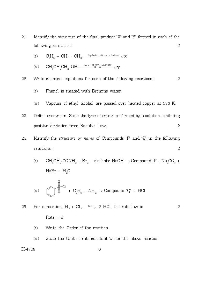 Goa Board Class 12 Question Paper for Chemistry