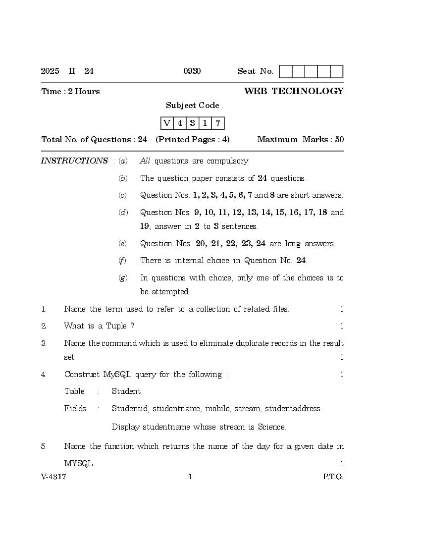 More Goa Board Class 12 Question Paper for Web Technology PDF Download – Visit Here