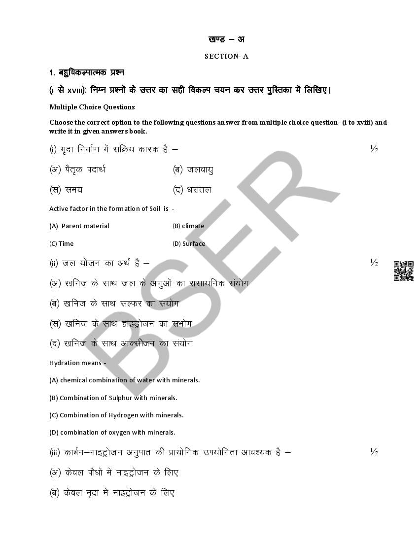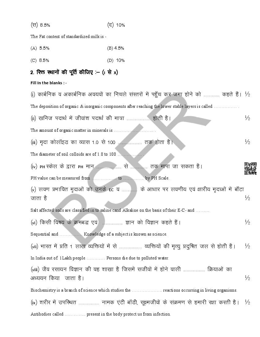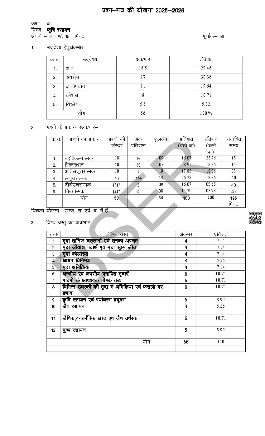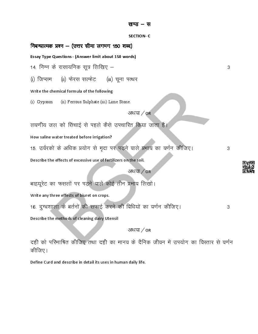 The Rajasthan Board model paper for class 12 Agriculture Chemistry is as follows.