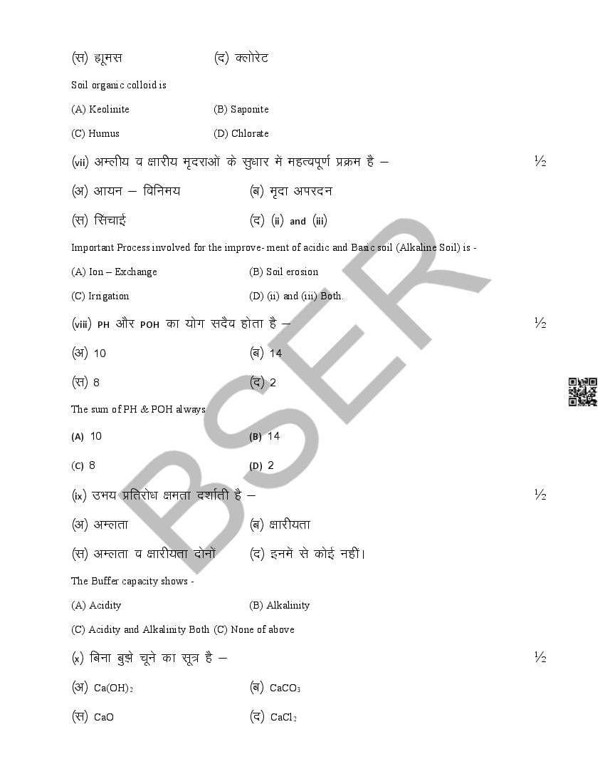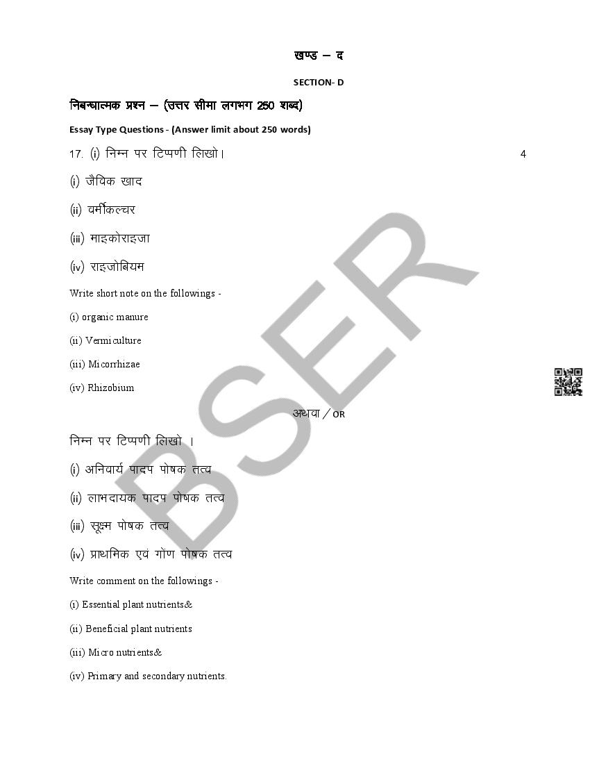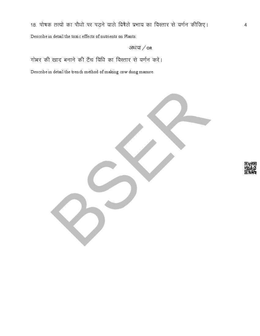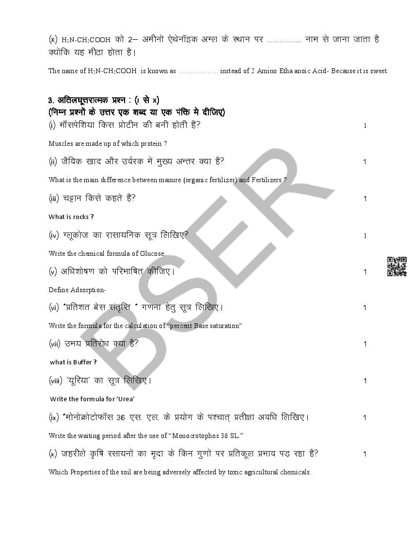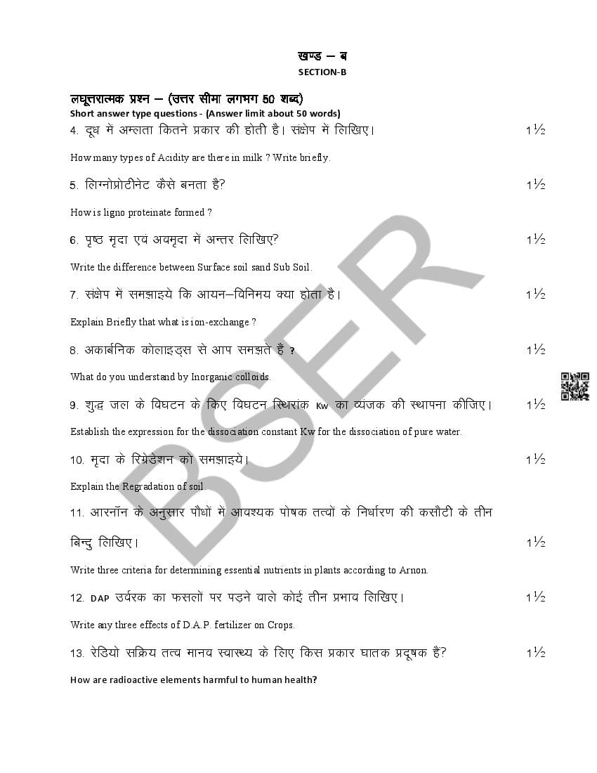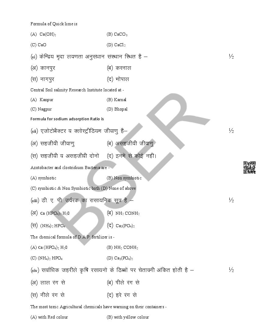 While you can solve the Agriculture Chemistry sample paper with the Rajasthan Board Agriculture Chemistry books and RBSE solutions for class 12. Nevertheless you may want RBSE Class 12 Agriculture Chemistry Question Paper with Answers. You can therefore download Rajasthan Board Class 12 Previous Year Question Papers as PDF to know exactly which questions were asked. The RBSE Previous Year Question papers Class 12 Agriculture Chemistry also help you score more in exam.