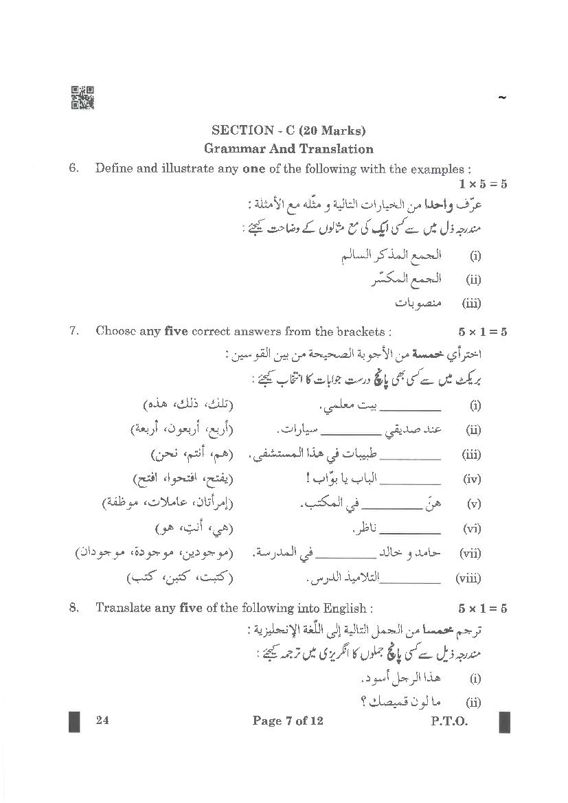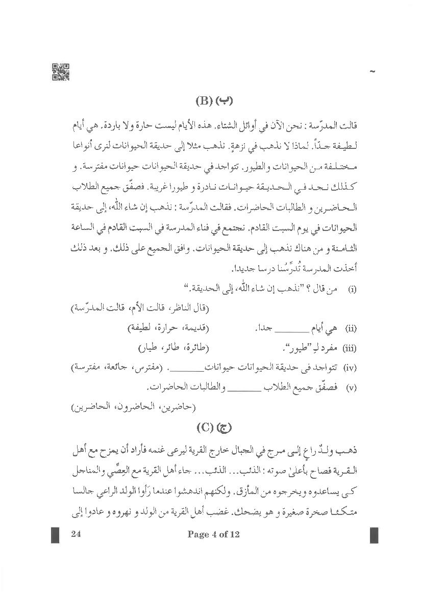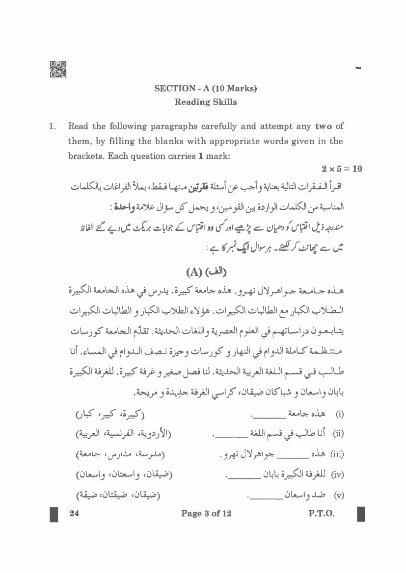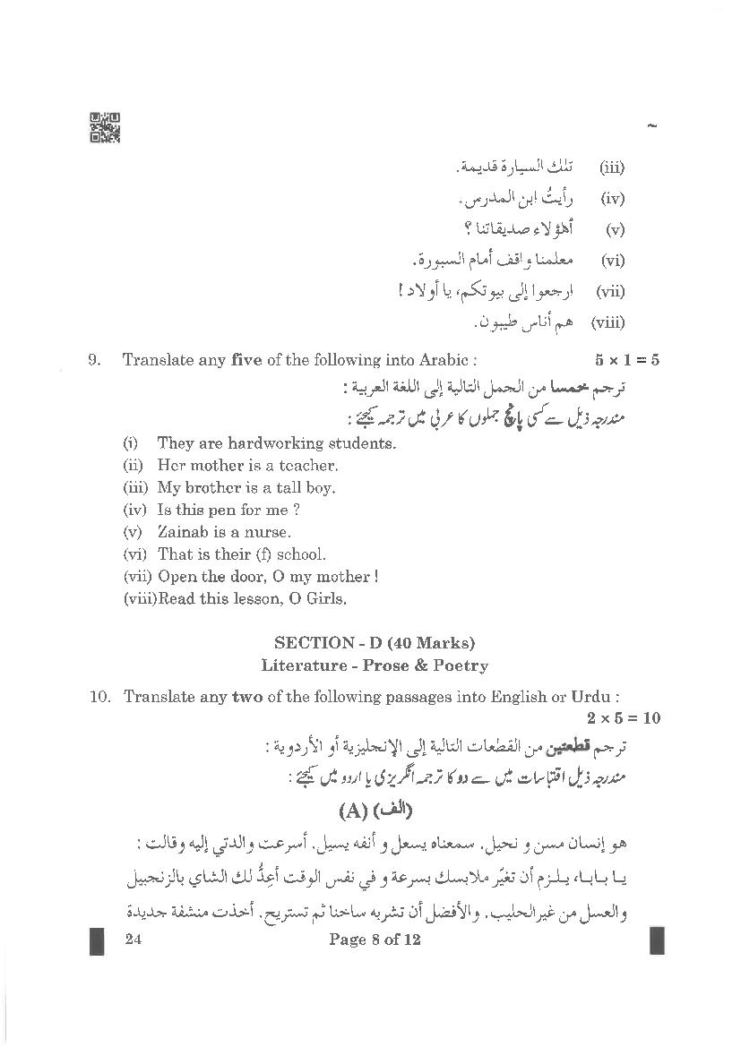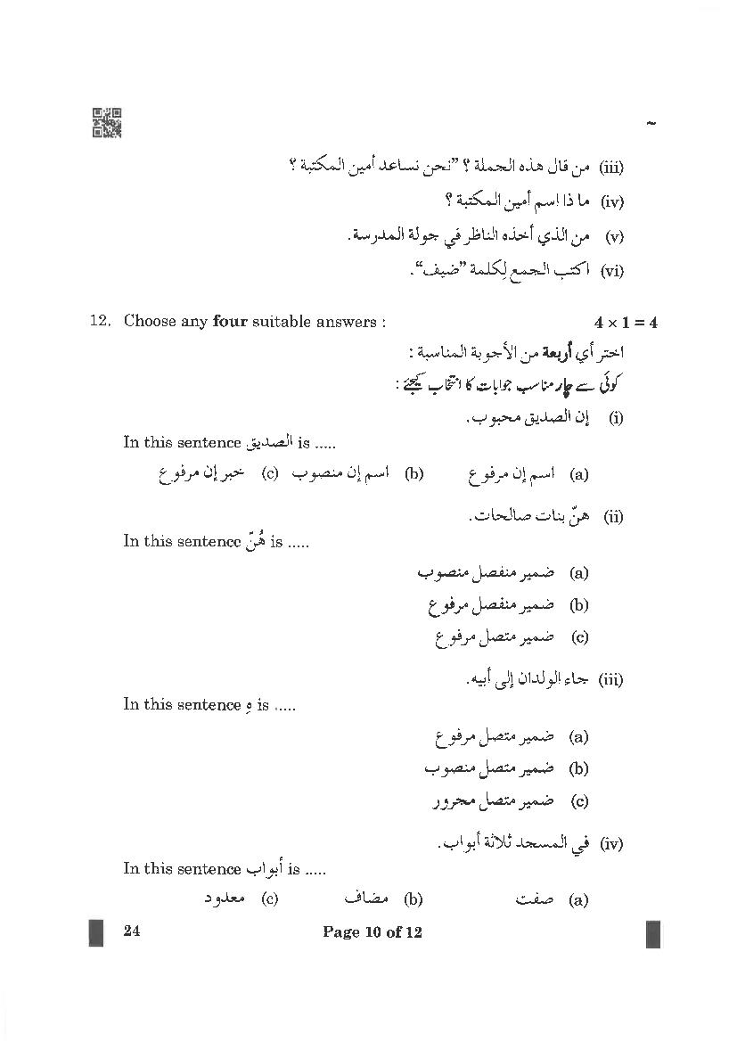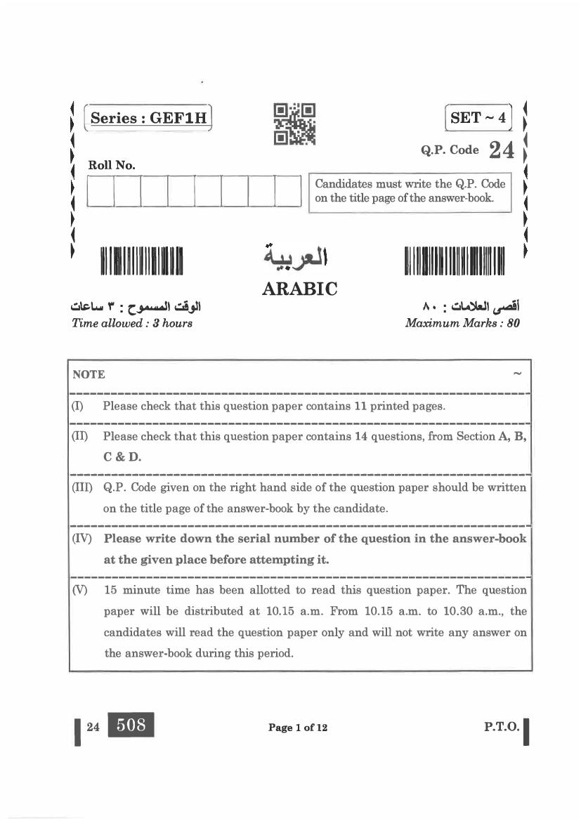 | Study Material Here | CBSE Class 10 Arabic Previous Year Question Paper |