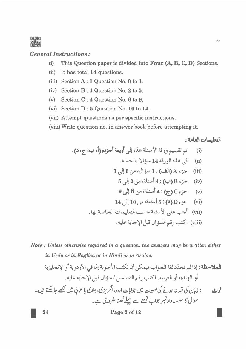 CBSE Class 10 Arabic Question Paper 2024 PDF Download Link – Click Here to Download Question Paper